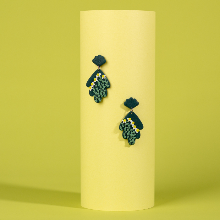 Descoperă povestea naturii în această pereche de cercei lungi din lut polimeric, într-o nuanță profundă de verde închis, inspirată de frumusețea și calmul unui câmp de mușetel! Cu fiecare detaliu meticulos realizat, acești cercei sunt o reprezentare delicată a copilăriei și a frumuseții naturii. Imaginează-ți zilele însorite petrecute în curtea plină de mușetel, iar acești cercei îți vor aduce aminte de acele momente magice. Lungimea lor conferă o notă de eleganță și prezență, iar nuanța lor profundă de verde închis adaugă un plus de mister și rafinament. Bucură-te de farmecul lor și lasă-i să-ți aducă amintiri dulci și să-ți lumineze zilele cu naturalețea lor plină de grație!