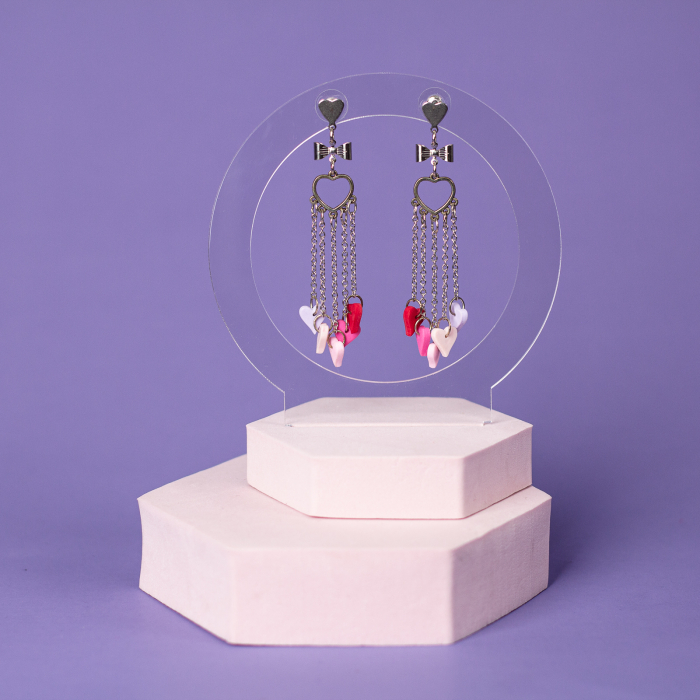 Acești cercei cu multe inimioare colorate în nuanțe pastel sunt inspirați de zicala Love is in the air. Delicați și jucăuși, inimioarele par să danseze la ureche, aducând un strop de bucurie. Ușor de purtat, sunt handmade, cu tortițe din oțel inoxidabil. Dacă iubești inimioarele, această pereche este perfectă pentru tine! Stocul este limitat și nu va fi refăcut.