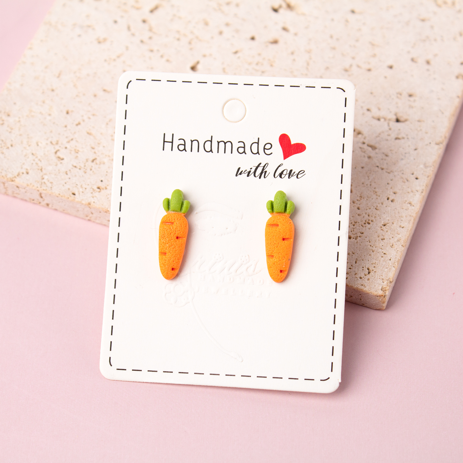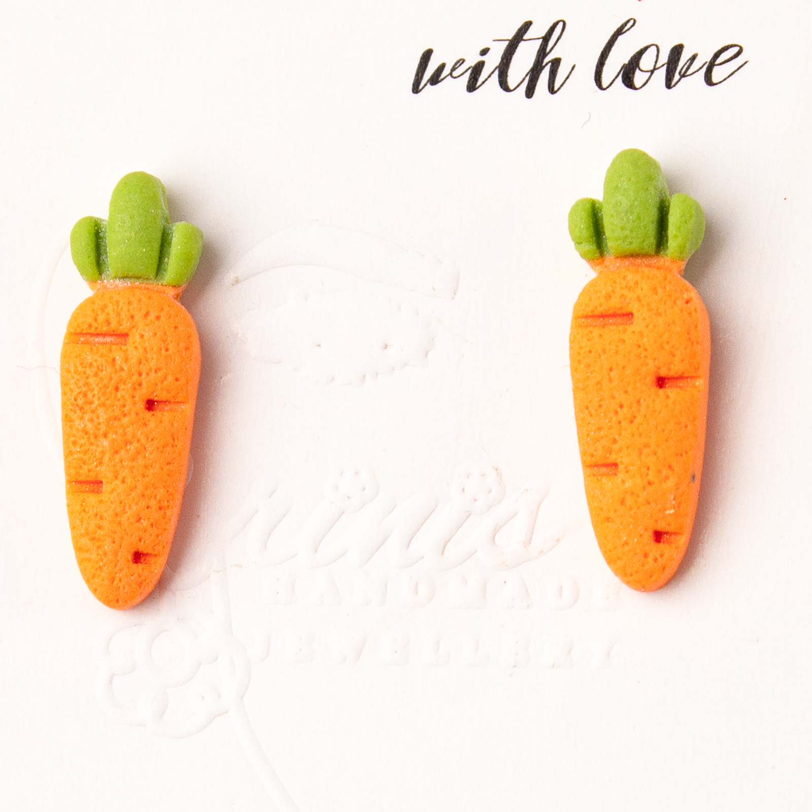 Această pereche de cercei mici din lut polimeric sunt mai mult decât niște bijuterii obișnuite - sunt o expresie a creativității și a veseliei. Cu forma lor jucausă de morcov, acești cercei adaugă un strop de distracție și unicitate oricărei ținute. Fiind potriviți pentru sezonul sărbătorilor pascale sau pentru orice alt moment, acești cercei sunt siguri să atragă atenția și să aducă un zâmbet pe fețele celor din jur.