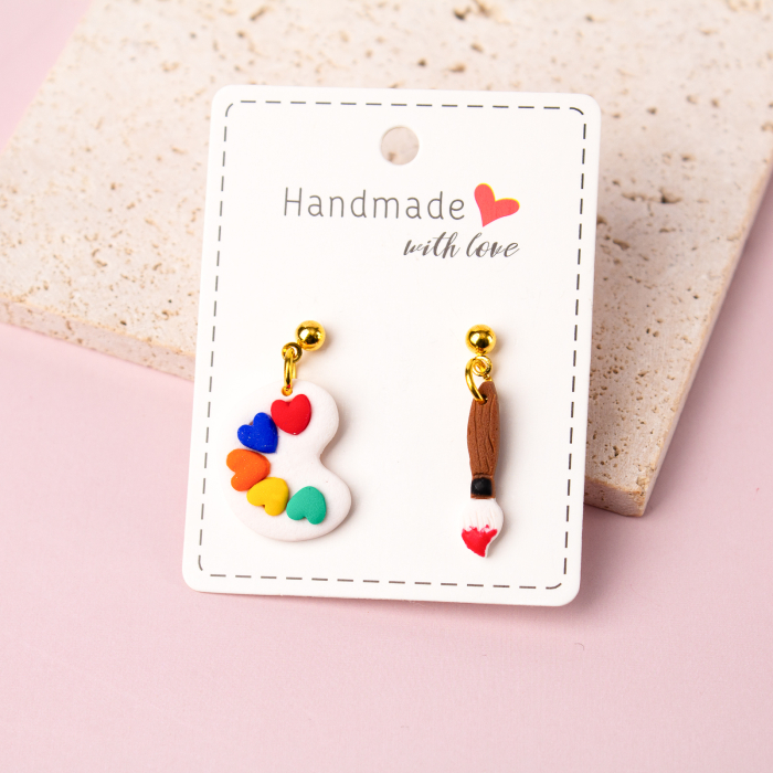 Acești cercei unici sunt dedicați pasionatelor de pictură și creativitate. Cu un design deosebit ce combină o paletă de culori vibrante și o pensulă de pictură, acești cercei exprimă perfect pasiunea pentru artă. De dimensiune medie, sunt ideali pentru a-ți completa ținuta cu un accesoriu artistic, dar subtil. Paint and Passion adaugă o notă de inspirație și originalitate fiecărui look, fiind bijuteriile perfecte pentru cele care își doresc să poarte cu mândrie simbolul creativității. Fie că îi porți la școală, la evenimente artistice sau în viața de zi cu zi, acești cercei vor atrage toate privirile.