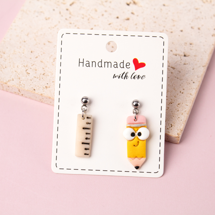 Acești cercei veseli și drăgălași, în formă de linie și un creion zâmbăreț, sunt combinația perfectă pentru școală! Reprezentând doi prieteni buni, gata să te însoțească în fiecare zi, acești cercei aduc un strop de voie bună și creativitate oricărei ținute. Cu un design jucăuș și plin de farmec, Precision Pencil sunt ideali pentru cei care iubesc accesoriile simpatice și pline de personalitate. Îndrăznește să îi porți și lasă-i să îți lumineze ziua, fie că ești la școală sau la birou!