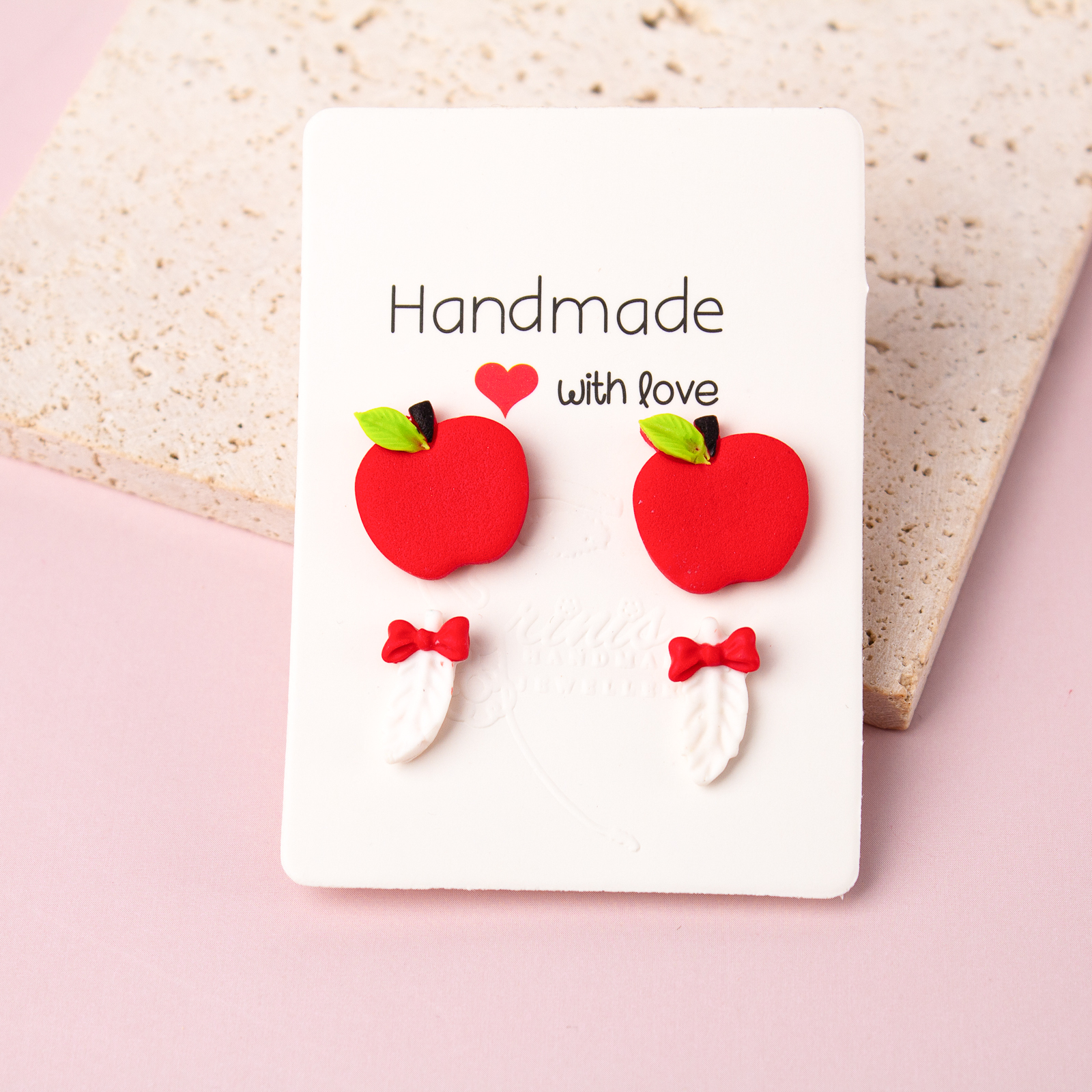 Acest set de cercei de tip studs nu putea lipsi din colecția "Back to School"! Format din două perechi jucăușe și speciale – un stilou reinventat sub forma unei pene delicate și o gustare sănătoasă reprezentată de un măr roșu – acest set este perfect pentru cei care iubesc cerceii mici, dar cu personalitate. Lucrat manual cu pasiune, "School Set" este ideal pentru a adăuga un strop de farmec și originalitate oricărei ținute. Potriviți pentru orice moment al zilei, acești cercei vor deveni rapid preferații tăi!