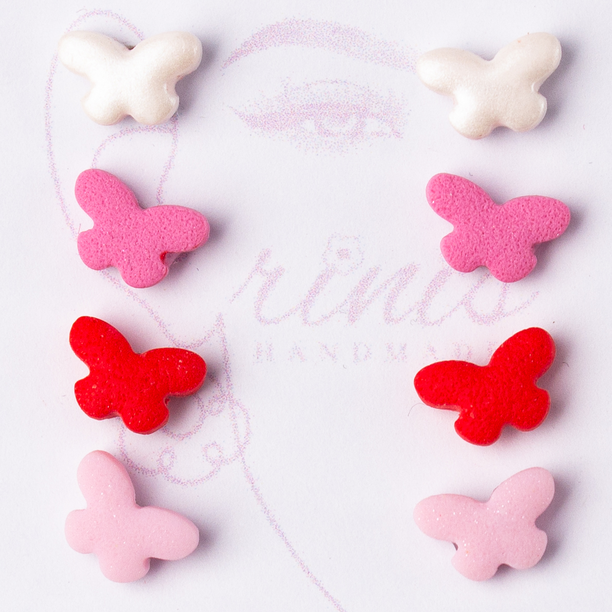 Fiecare pereche este realizată manual din lut polimeric, capturând frumusețea și grația acestor creaturi delicate.