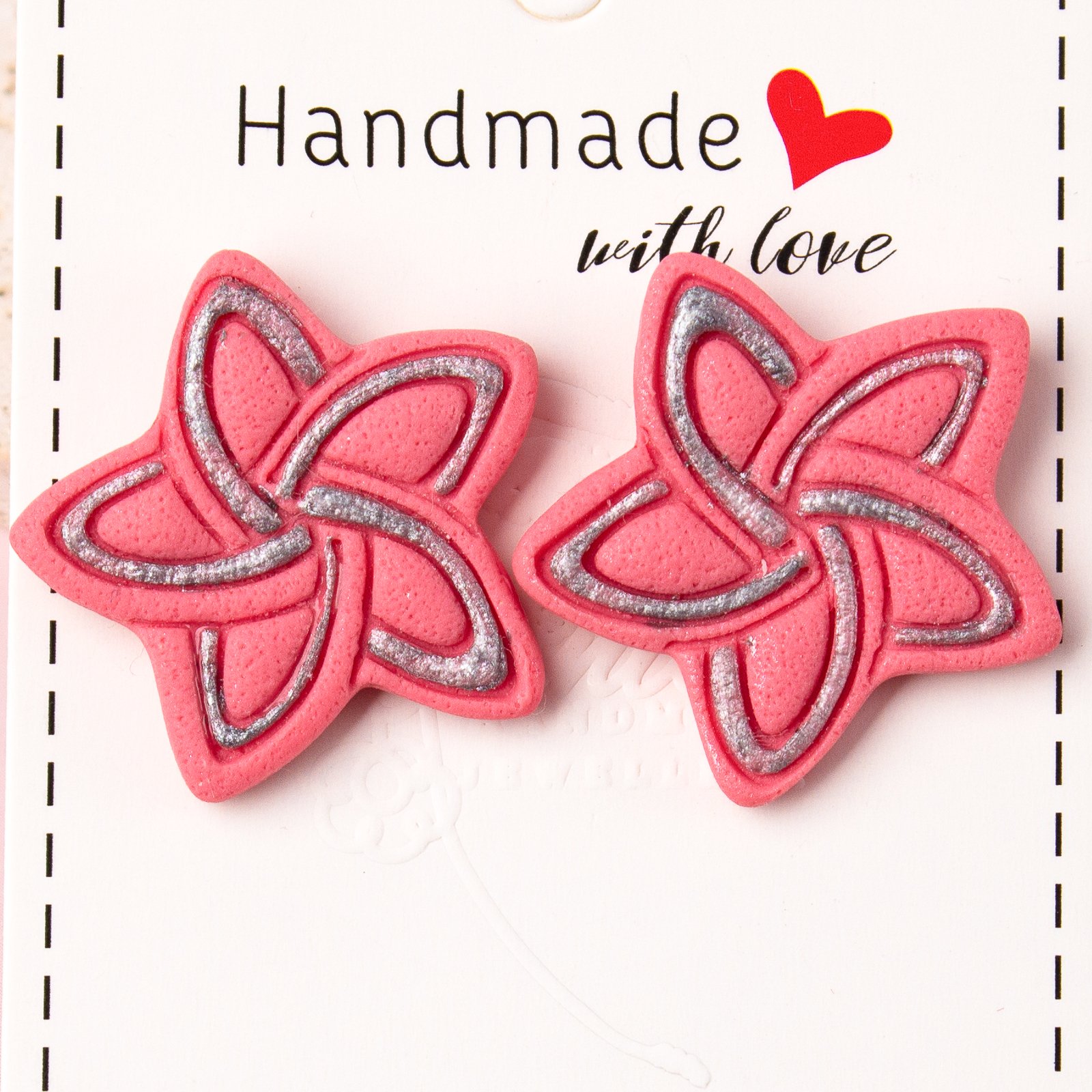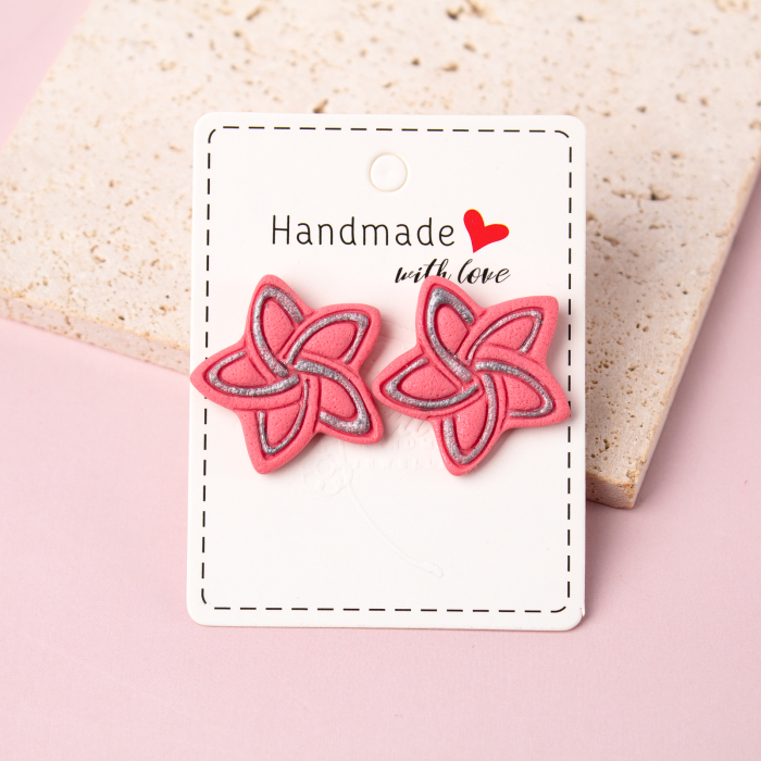 Descoperă magia și strălucirea cu perechea de cercei "Stelagon"! Acești cercei stud din lut polimeric îți vor aduce o notă de eleganță și rafinament în fiecare moment al zilei. Forma lor de steluță, împreună cu modelul argintiu, adaugă un strop de strălucire și farmec oricărei ținute. Cu nuanța lor delicată de roz, acești cercei sunt alegerea perfectă pentru a-ți completa aspectul cu un aer feminin și stilat. Bucură-te de frumusețea lor și lasă-i să-ți lumineze ziua cu strălucirea lor subtilă și eleganța lor rafinată!