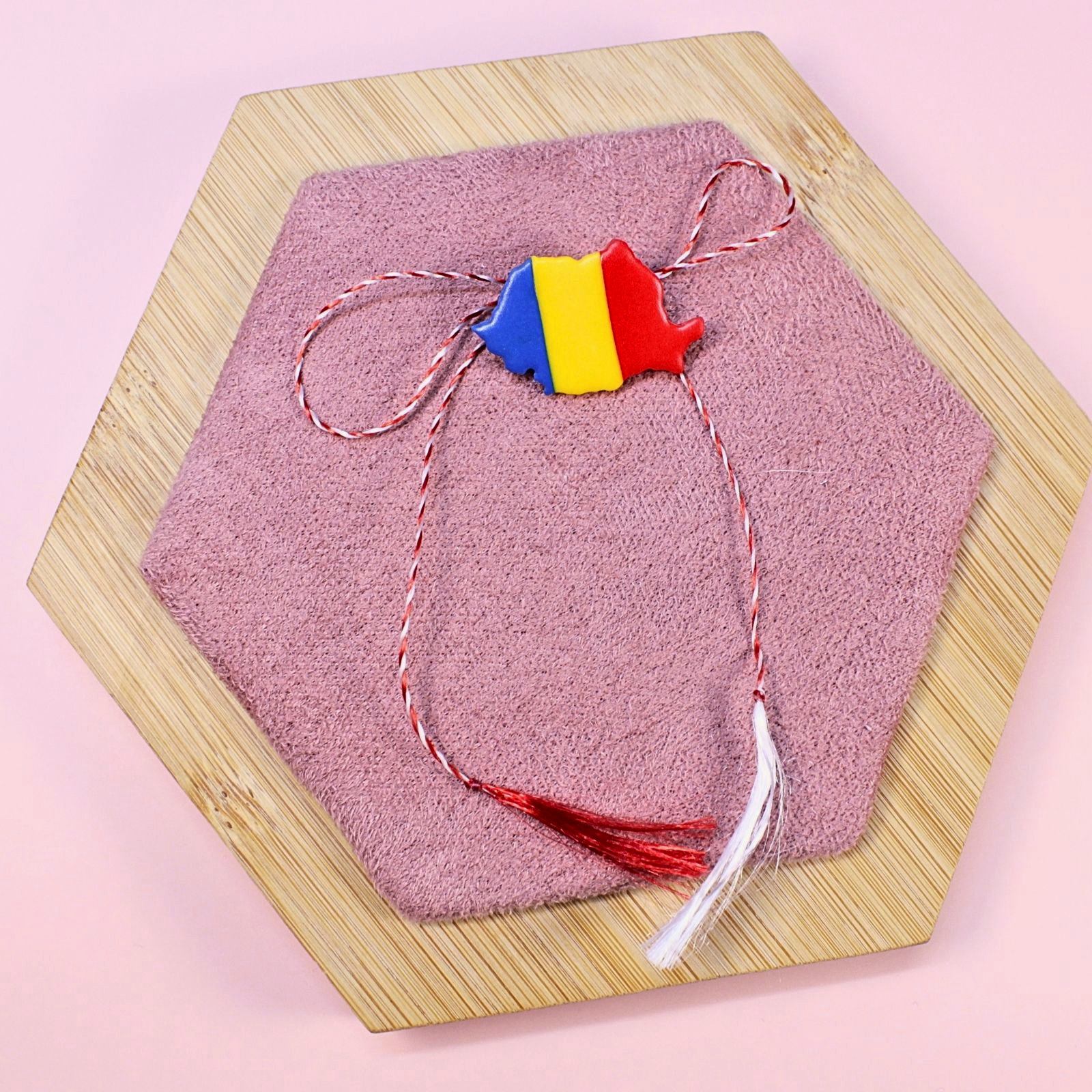 Acest mărțișor în formă de hartă a României este un simbol al mândriei și iubirii față de țară. Creat manual din lut polimeric, cu un design simplu, dar cu o mare încărcătură emoțională, acest mărțișor este perfect pentru cei care se mândresc cu rădăcinile lor românești și poartă cu dragă inimă valorile naționale. Poate fi purtat oricând ca un accesoriu unicat, aducând cu sine un mesaj puternic de patriotism și apartenență. Este cadoul ideal pentru orice iubitor de țară care vrea să își exprime legătura cu România într-un mod elegant și subtil.