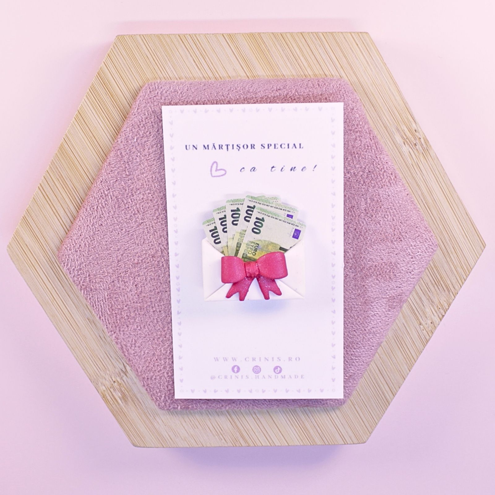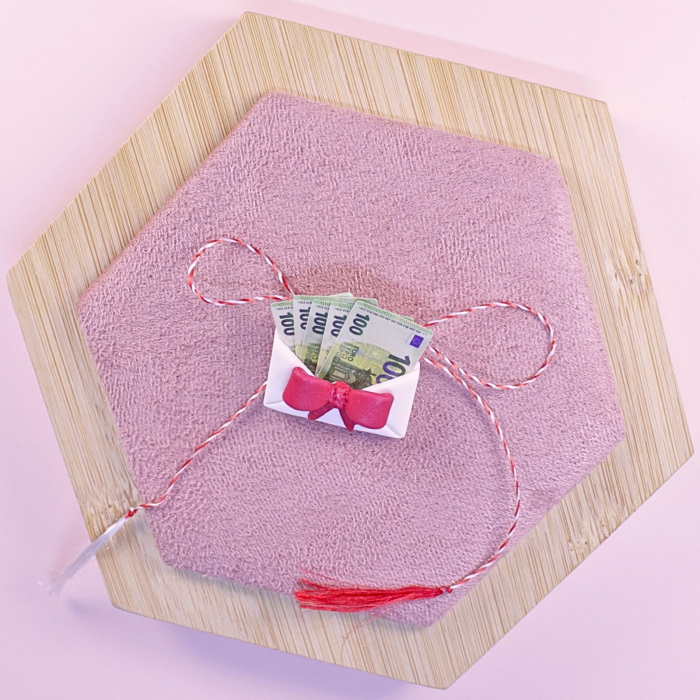 Un cadou simbolic, menit să aducă noroc, voie bună și un mic „sprijin material” celui drag. Banii din plic sunt, desigur, falși, dar gestul contează – și zâmbetul garantat.