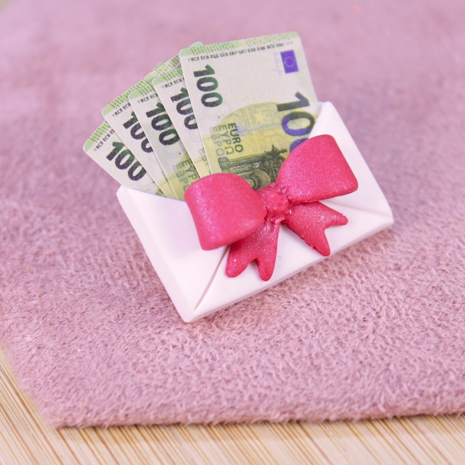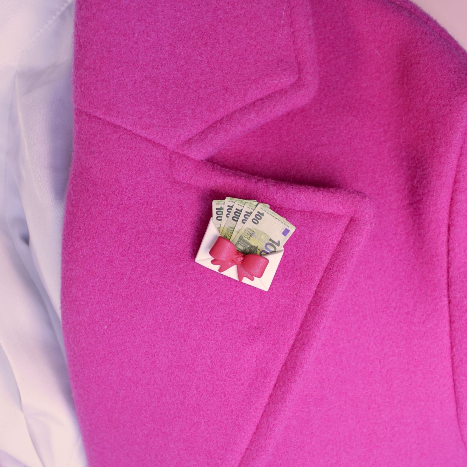 Inspirată din celebrul dar de nuntă, această broșă-mărțișor vine sub forma unui… plic cu bani