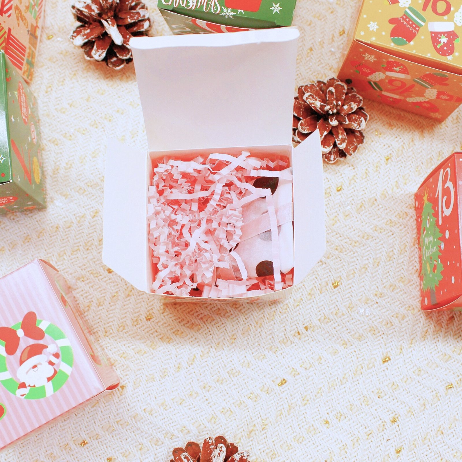 Calendarul advent vine într-un ambalaj festiv, conceput să transforme deschiderea fiecărei zile într-un moment de încântare.