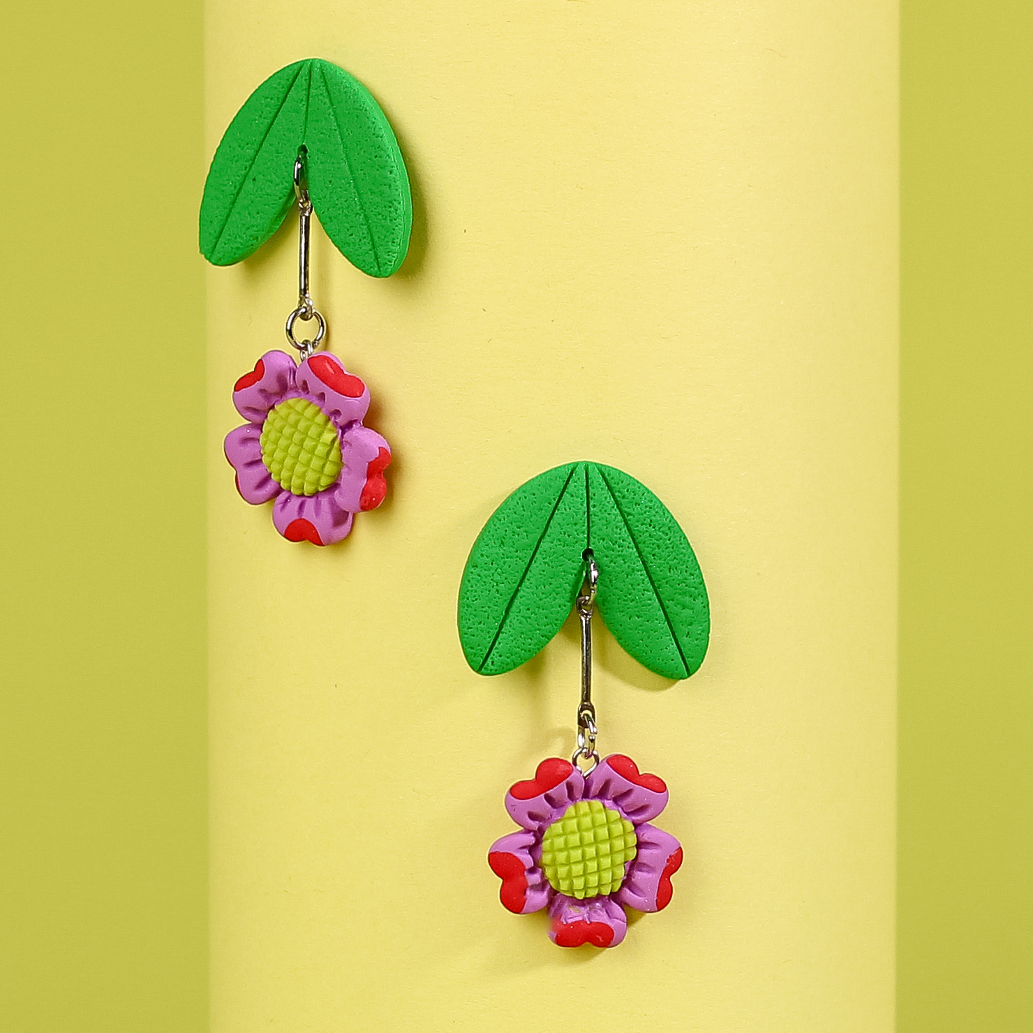Textura ușoară și flexibilă a lutului polimeric asigură confortul în purtare, în timp ce culorile vibrante și formele originale transformă această pereche de cercei într-un statement al individualității tale. Fie că alegi să îi asortezi cu o ținută casual sau să îi integrezi într-un look mai sofisticat, acești cercei sunt garanția unei apariții memorabile.