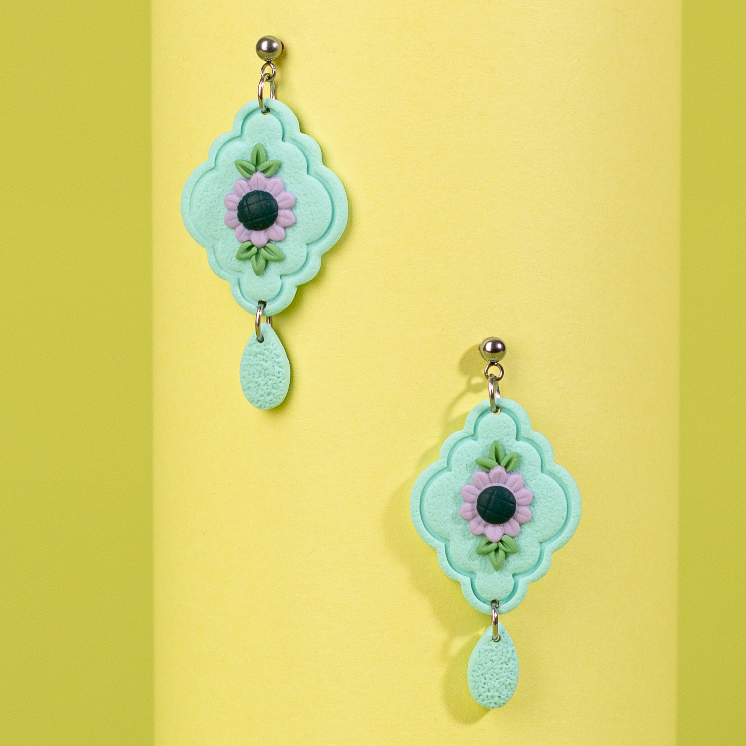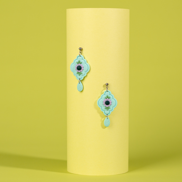 Textura ușoară și flexibilă a lutului polimeric asigură confortul în purtare, în timp ce culorile vibrante și formele originale transformă această pereche de cercei într-un statement al individualității tale. Fie că alegi să îi asortezi cu o ținută casual sau să îi integrezi într-un look mai sofisticat, acești cercei sunt garanția unei apariții memorabile.
