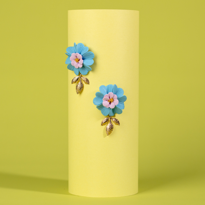 Parte din colecția Spring, cerceii Naiad îmbină frumusețea naturii cu un design sofisticat. Cu petale albastre și accente de mov pal în interior, această pereche de cercei voluminoși emană un farmec aparte, inspirat de nimfele apelor cristaline. Frunza aurie adaugă un detaliu rafinat, evidențiind eleganța și feminitatea fiecărei purtătoare.