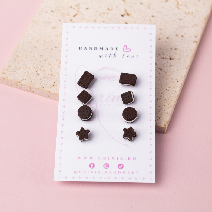 Adaugă o notă dulce și inedită look-ului tău cu acest set adorabil de cercei cu biscuiți cu cremă de vanilie!