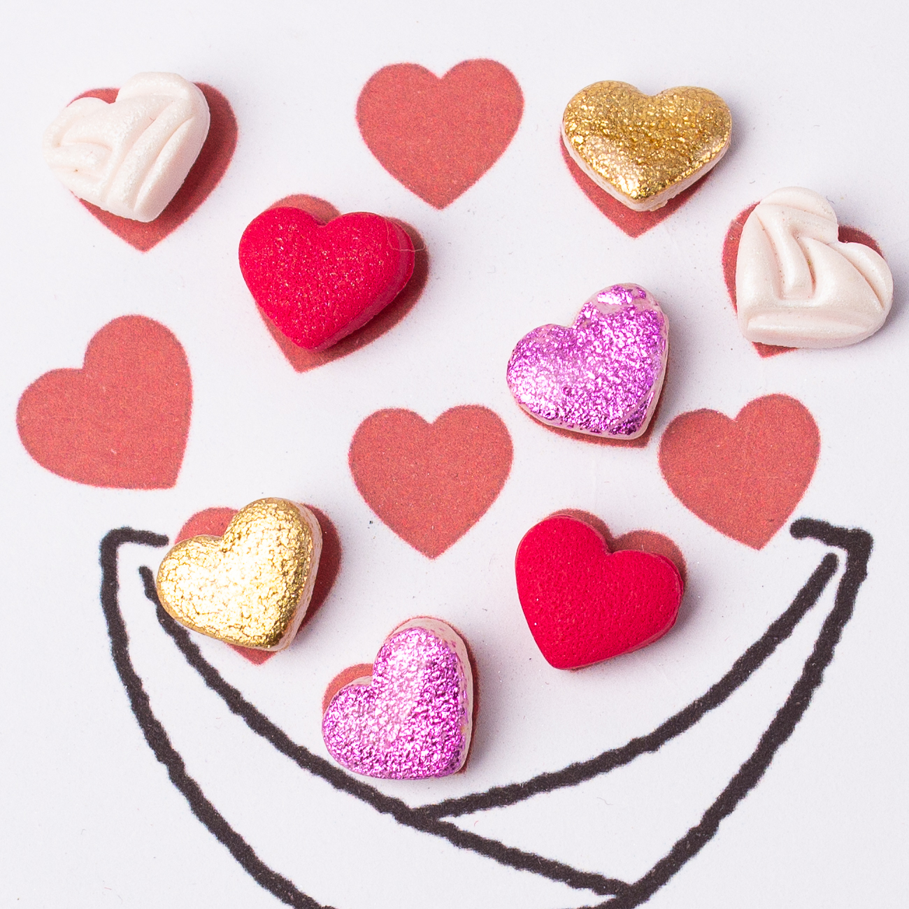 Descoperă colecția noastră adorabilă de cercei tip studs cu inimi colorate din lut polimeric!