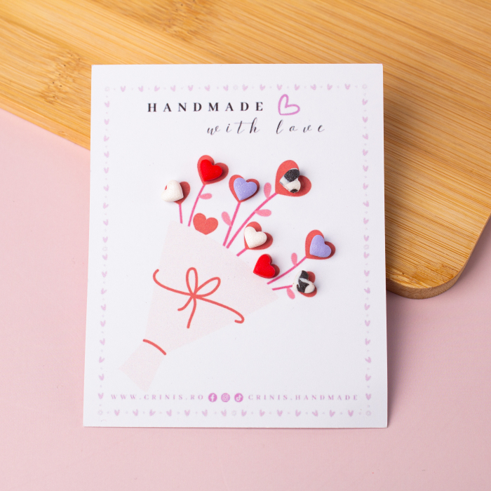 Descoperă colecția noastră adorabilă de cercei tip studs cu inimi colorate din lut polimeric!