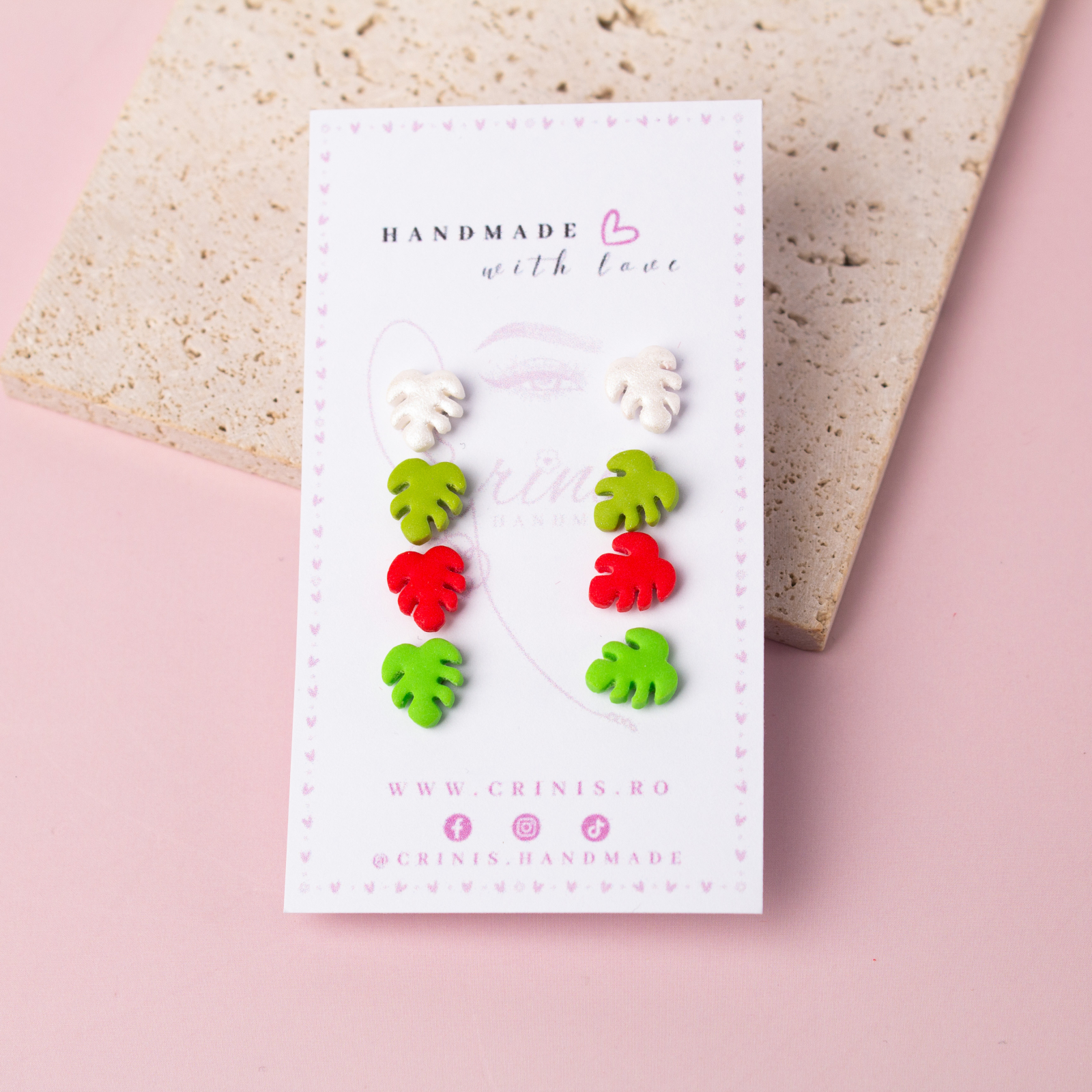 Enchantează-ți garderoba cu acest set delicat de cercei Monstera!