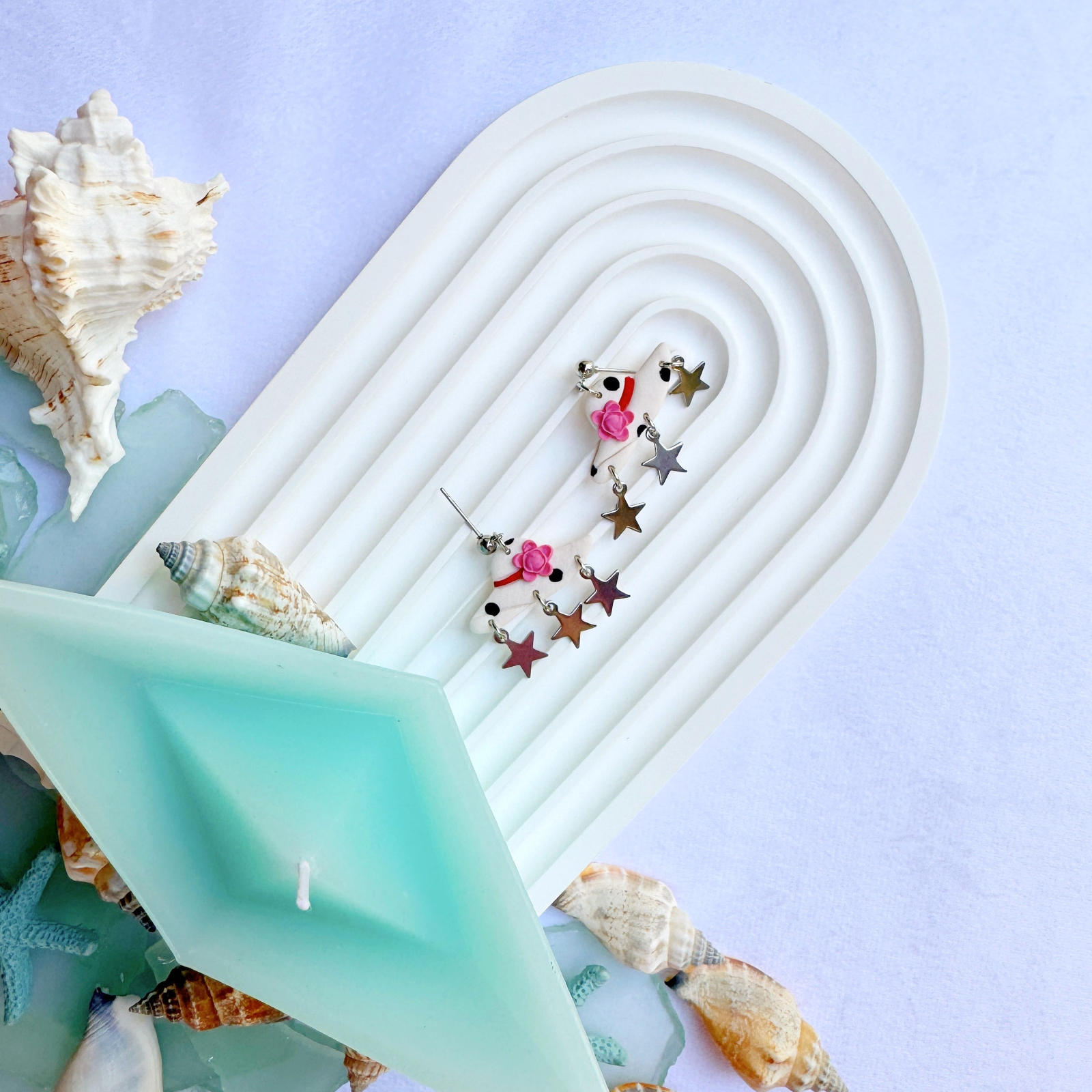 Această pereche de cercei din colecția Summer este veselă și jucăușă, perfectă pentru a aduce o notă de bucurie în zilele însorite de vară și nu numai. Cu un design care se așază frumos la ureche, cerceii sunt decorați cu steluțe căzătoare care dansează cu fiecare mișcare, adăugând un strop de magie fiecărei zile. Fie că îi porți la o plimbare pe plajă sau în viața de zi cu zi, acești cercei vor aduce un zâmbet pe buze și vor completa perfect orice ținută cu strălucirea lor.