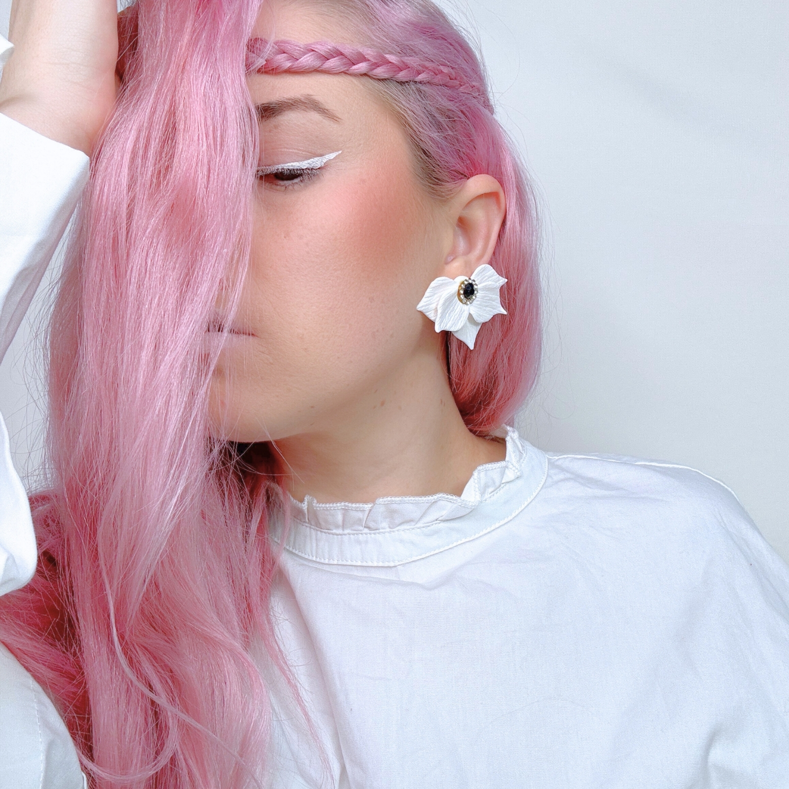 Fiecare detaliu este modelat manual în atelierul nostru, din lut polimeric, iar tijele din oțel inoxidabil îi fac confortabili și rezistenți. Se așază frumos pe ureche și oferă acel efect feminin și rafinat care nu are nevoie de prea multe cuvinte.