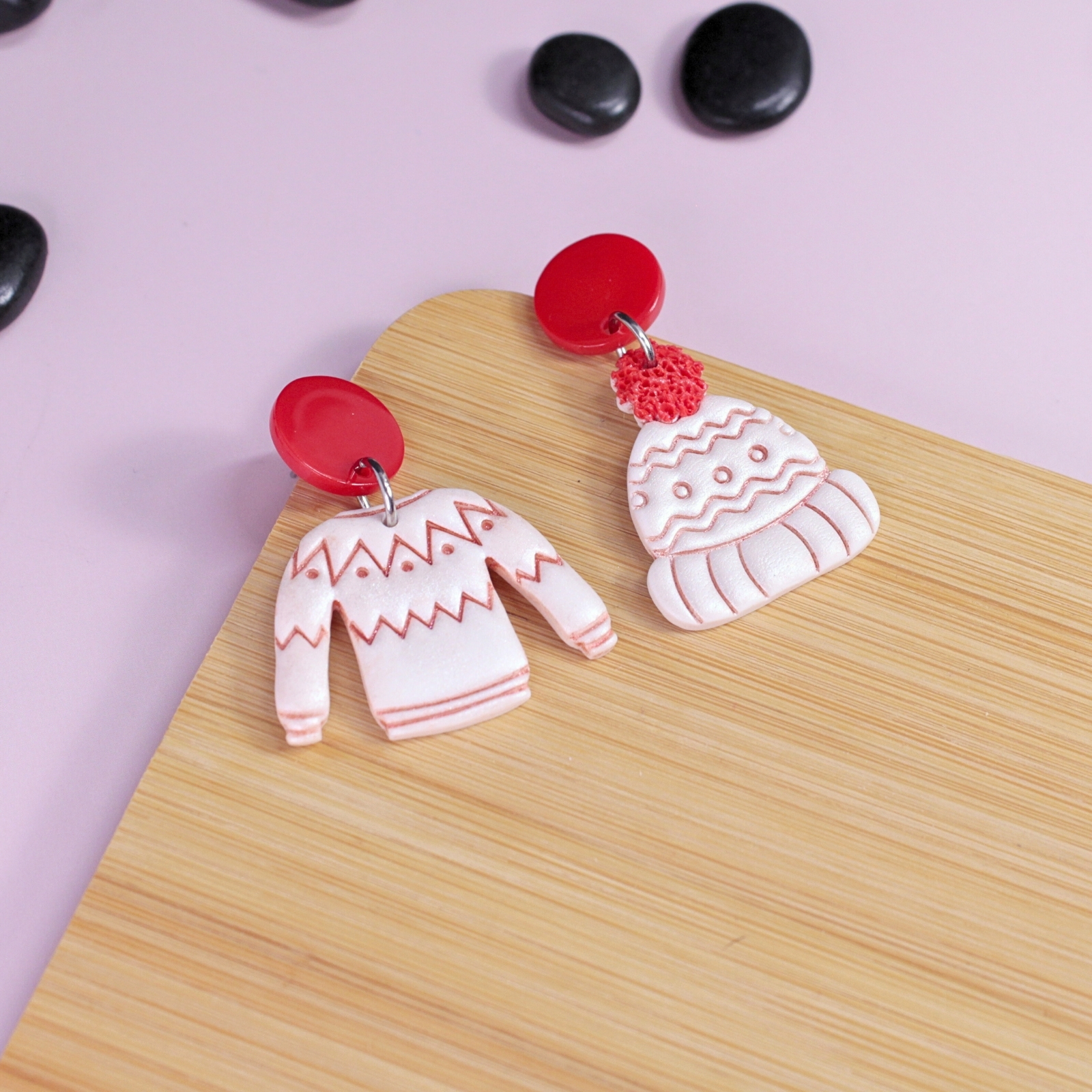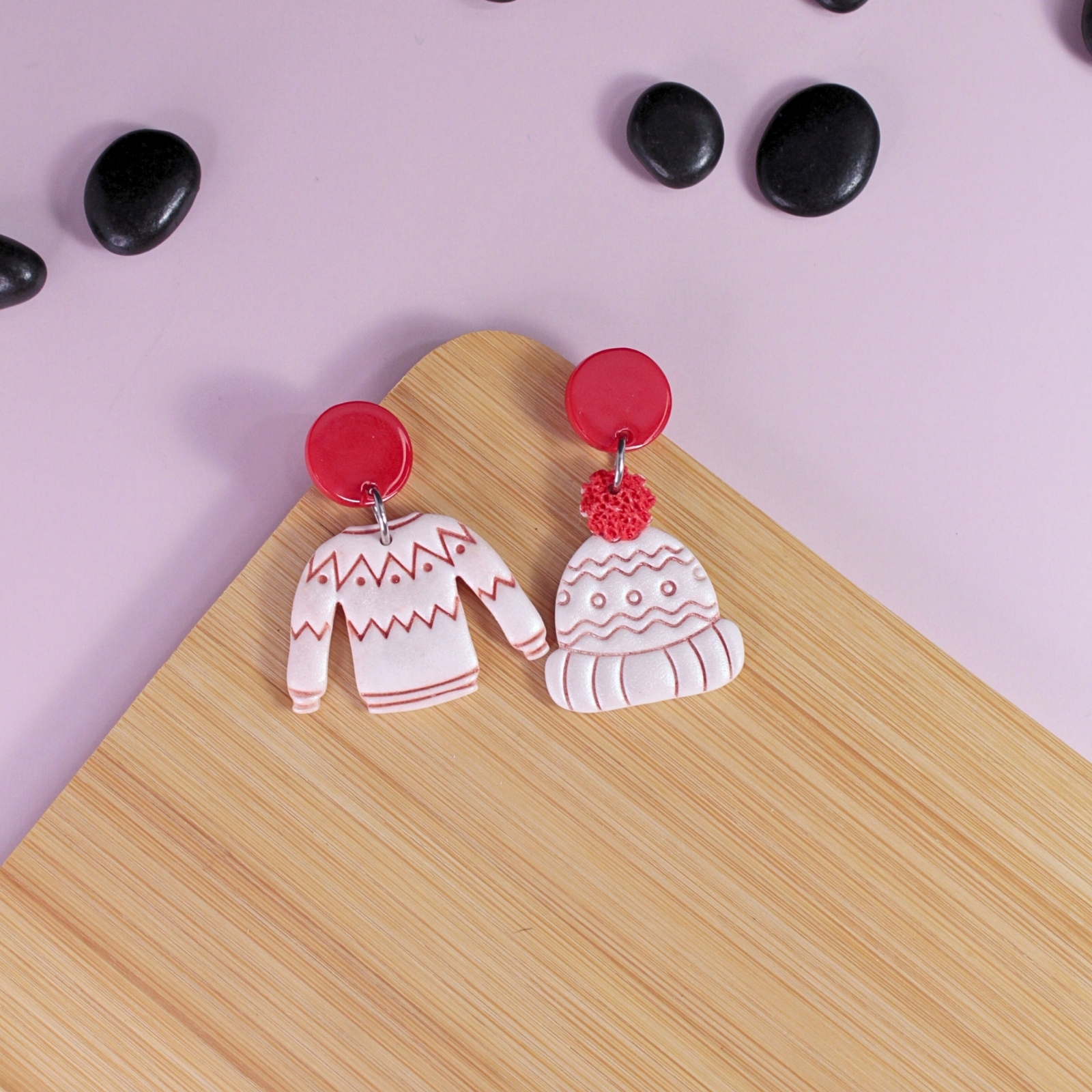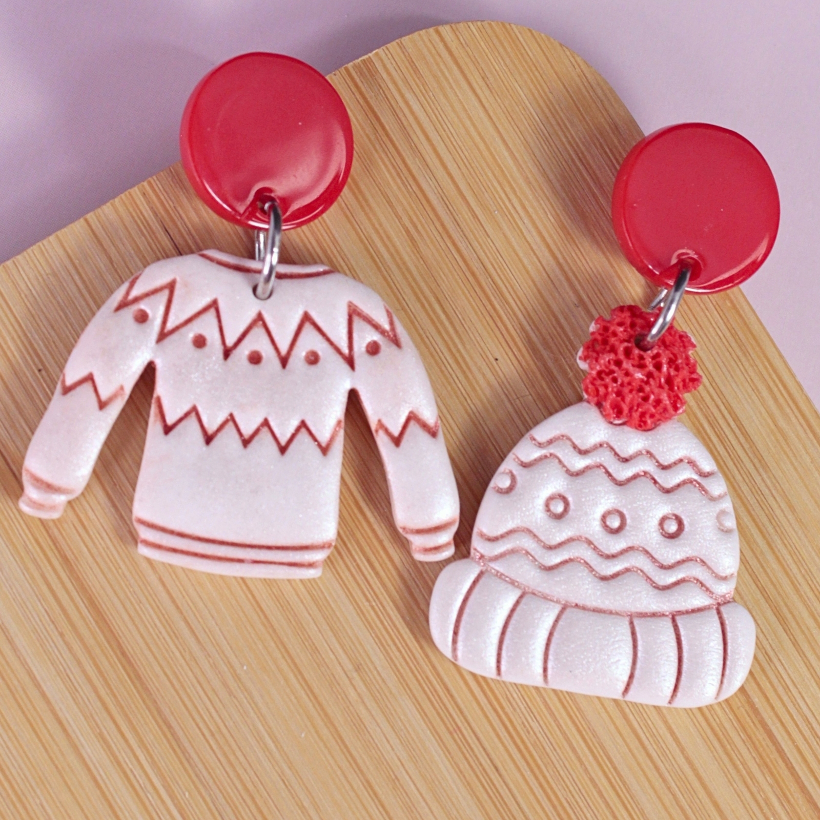 Acești cercei nonconformiști de mărime medie sunt unici: un cercel cu căciuliță pufoasă, celălalt cu un pulover calduros, decorat cu motive de Crăciun. Perfecti pentru cei care iubesc să-și exprime personalitatea și să aducă zâmbete în jur.