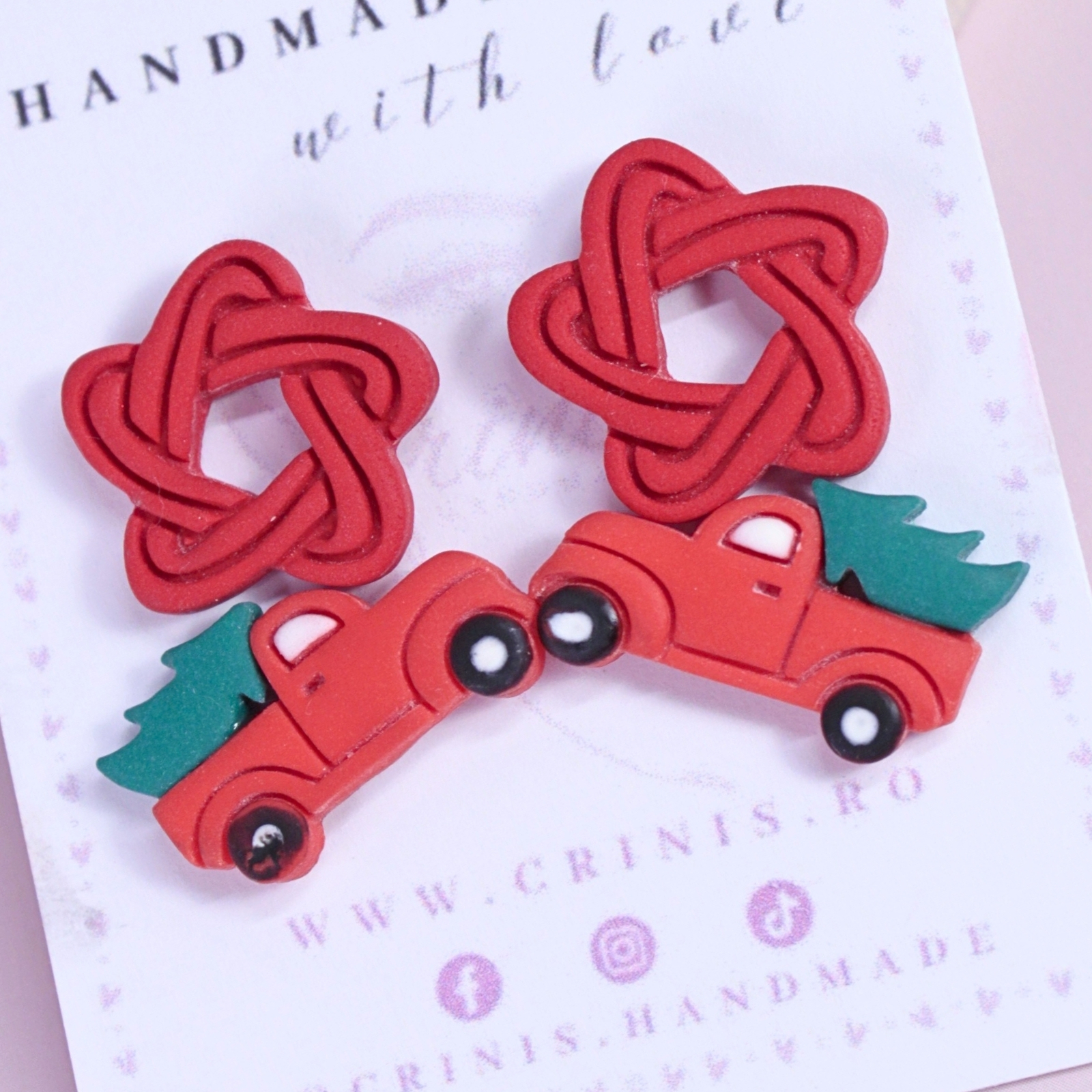 Format din două perechi de tip studs – o pereche de mașinuțe care transportă brăduțul de Crăciun și o pereche de coronite festive – acești cercei amuzanți și simpatici sunt perfecți pentru cei care adoră accesorii nonconformiste și pline de veselie.