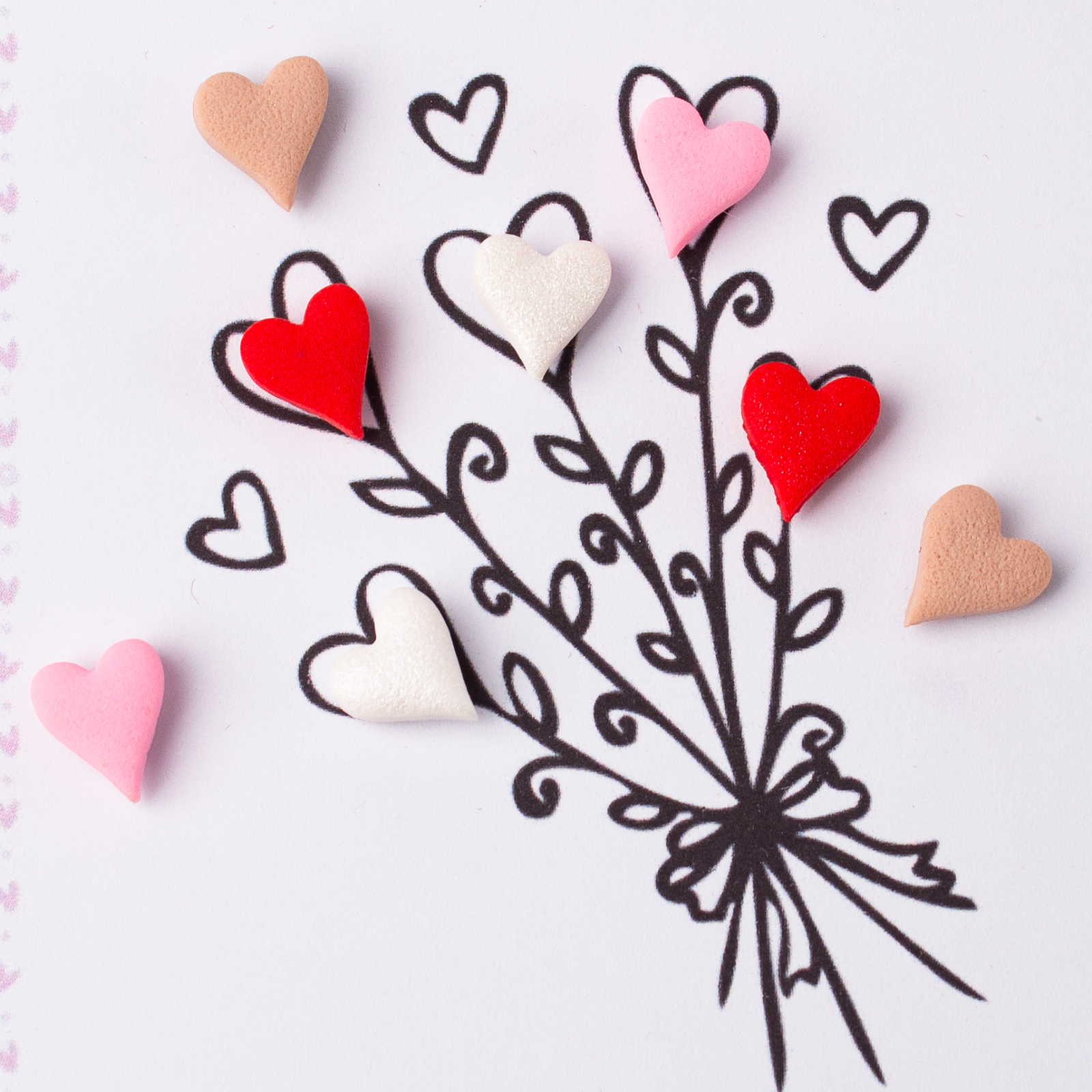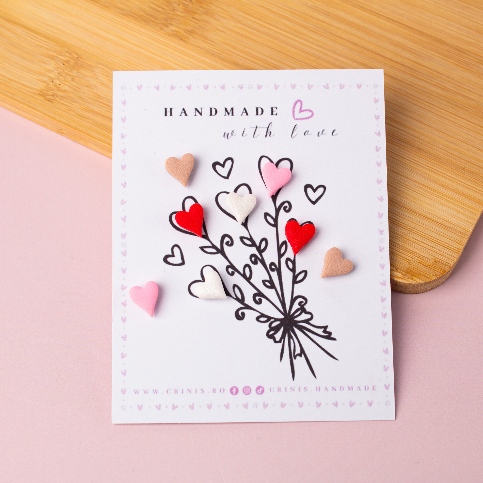 Descoperă colecția noastră adorabilă de cercei tip studs cu inimi colorate din lut polimeric!