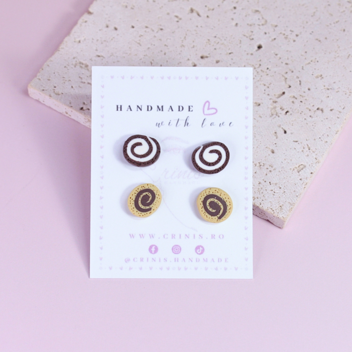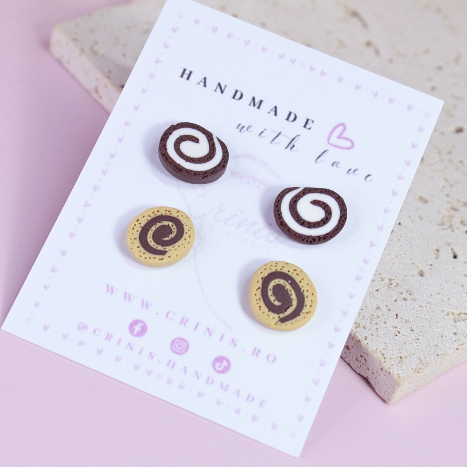 Setul delicios de cercei „Ruladă” este perfect pentru iubitorii de dulciuri! Format din două perechi adorabile, fiecare ruladă are aproximativ 1,2 cm și arată atât de apetisant, încât vei atrage toate privirile.