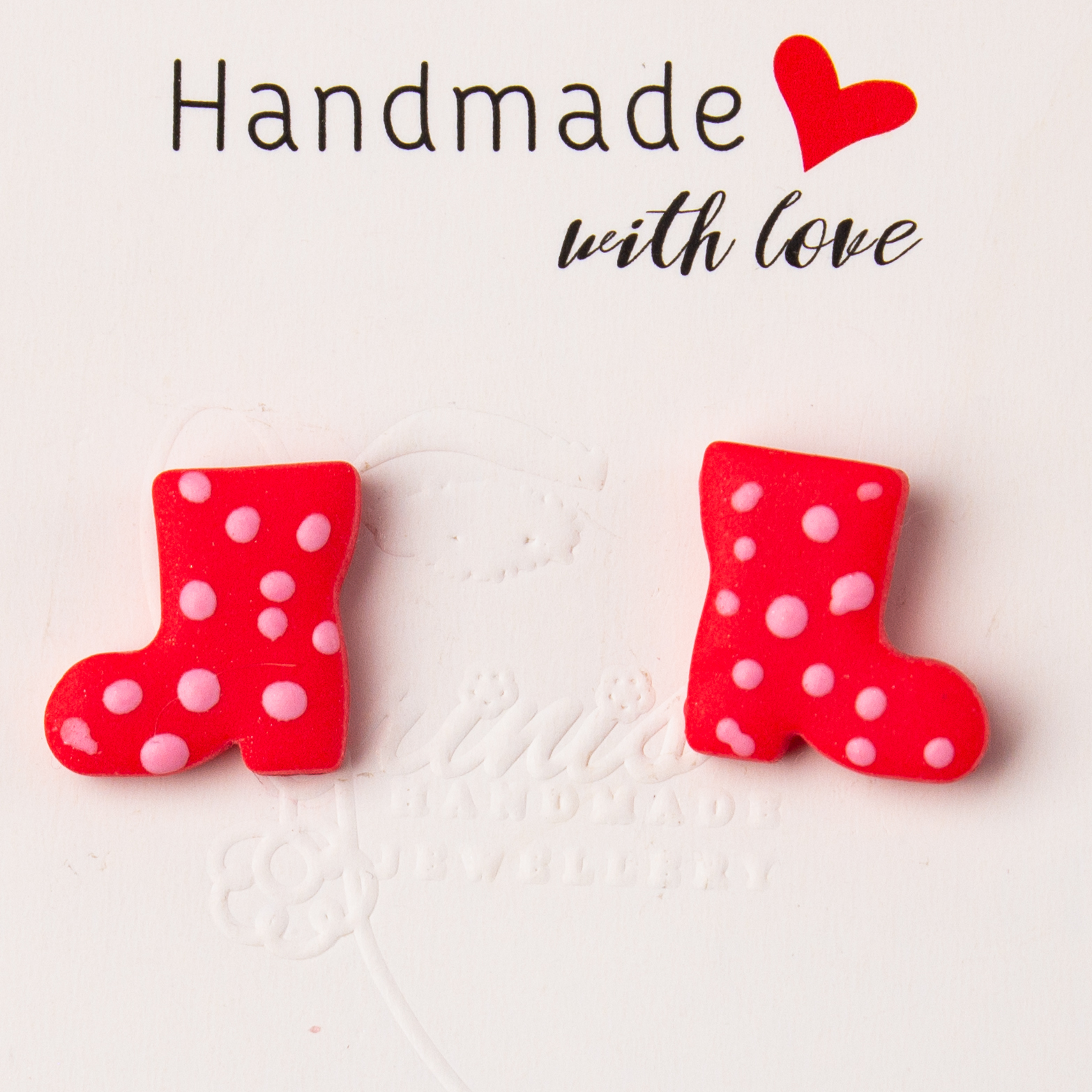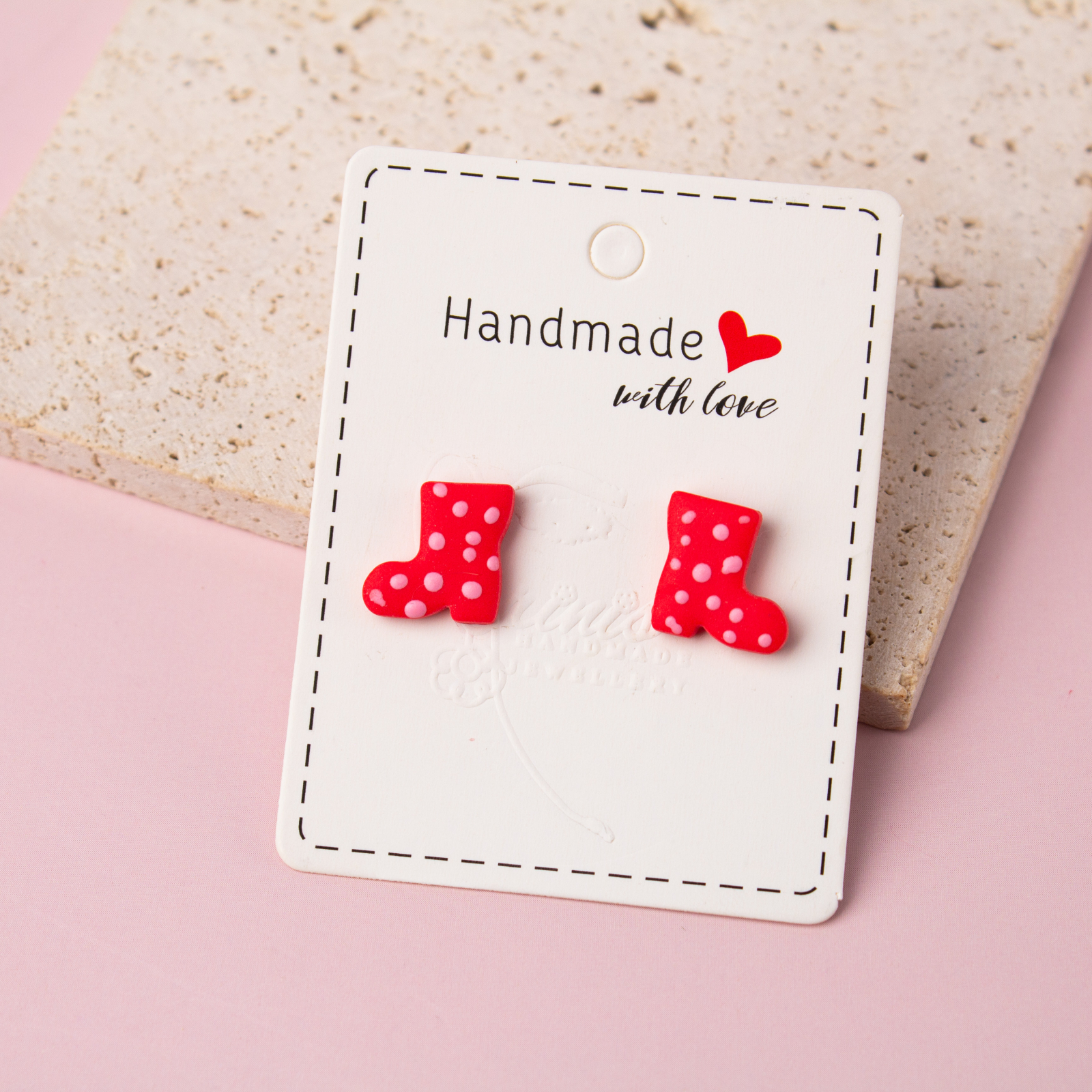 Această pereche de cercei mici din lut polimeric în formă de ghetuțe cu buline te va duce înapoi în timp, la zilele copilăriei, când purtai cu bucurie ghete de ploaie roșii cu buline. Amuzanți și adorabili, acești cercei sunt o reminiscență a jocului și al inocenței vremurilor trecute. Cu un design ludic și o notă de nostalgie, acești cercei sunt nu doar accesorii, ci și povești mici purtate la urechi.