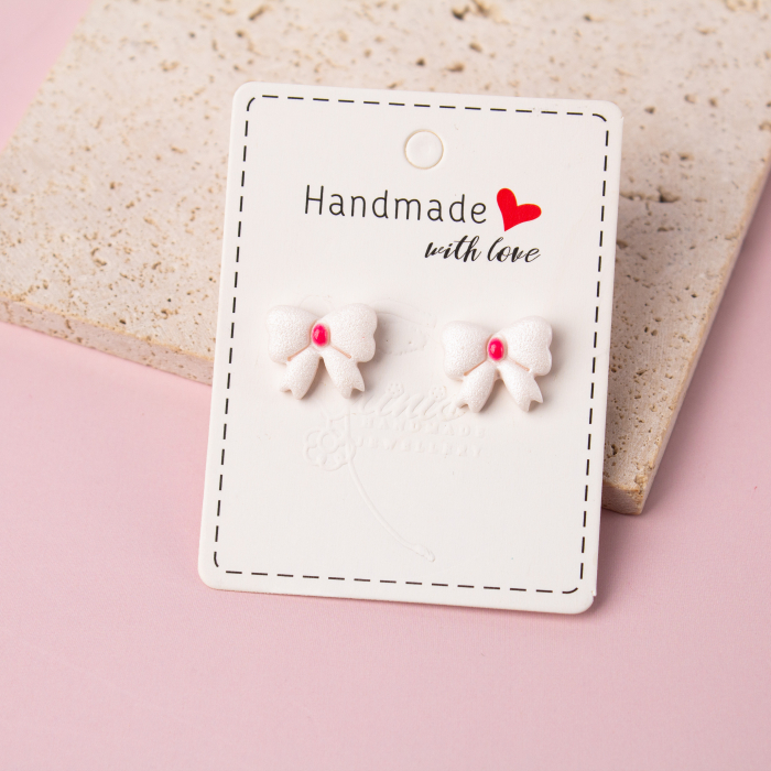 Îmbrăcați-vă într-o dulce eleganță cu acești adorabili cercei în formă de fundiță din lut polimeric! Fiecare pereche emană un farmec jucăuș și feminin, aducând un strop de veselie și rafinament în fiecare purtare. Perfecti pentru a adăuga o notă de stil și gingășie oricărei ținute!
