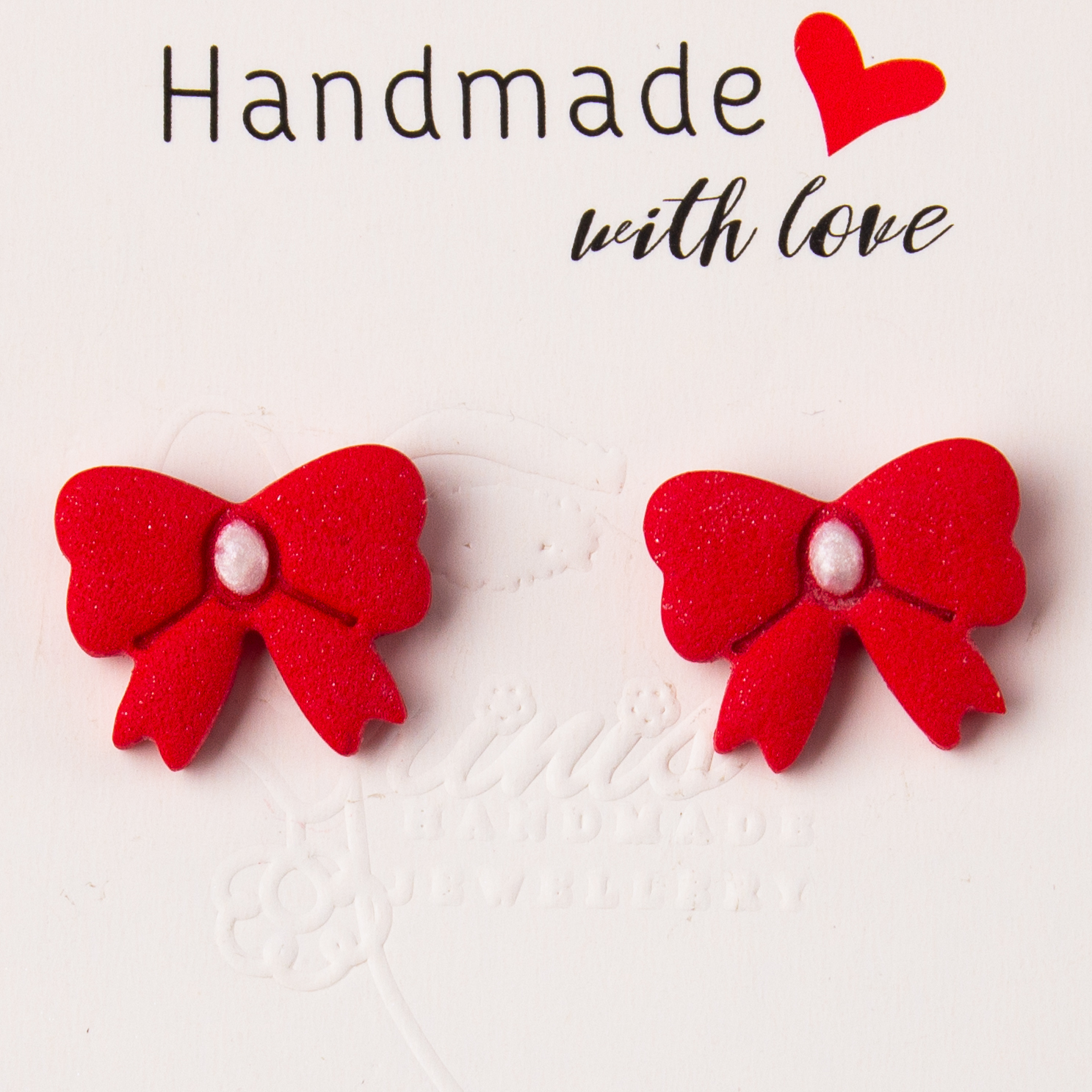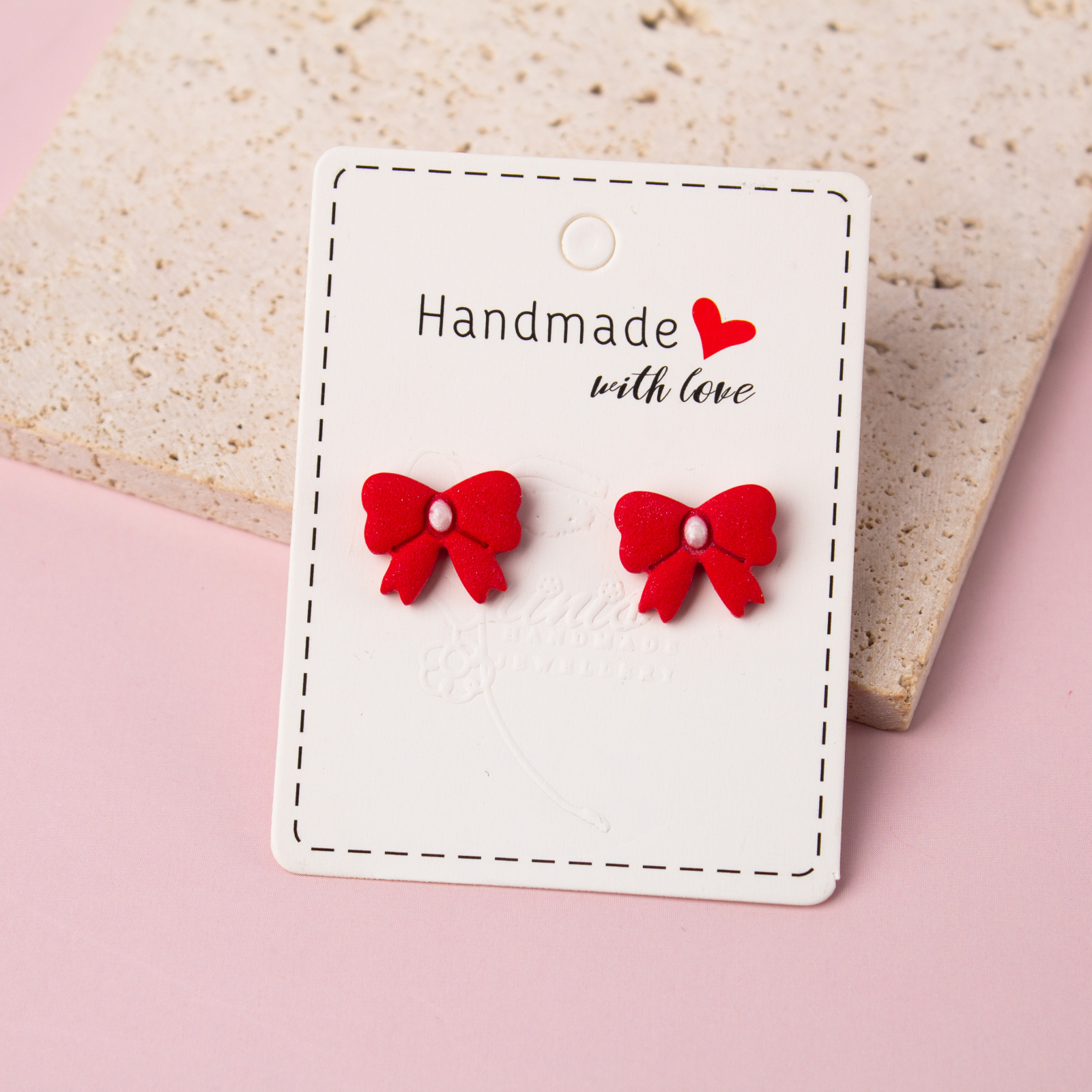 Îmbrăcați-vă într-o dulce eleganță cu acești adorabili cercei în formă de fundiță din lut polimeric! Fiecare pereche emană un farmec jucăuș și feminin, aducând un strop de veselie și rafinament în fiecare purtare. Perfecti pentru a adăuga o notă de stil și gingășie oricărei ținute!