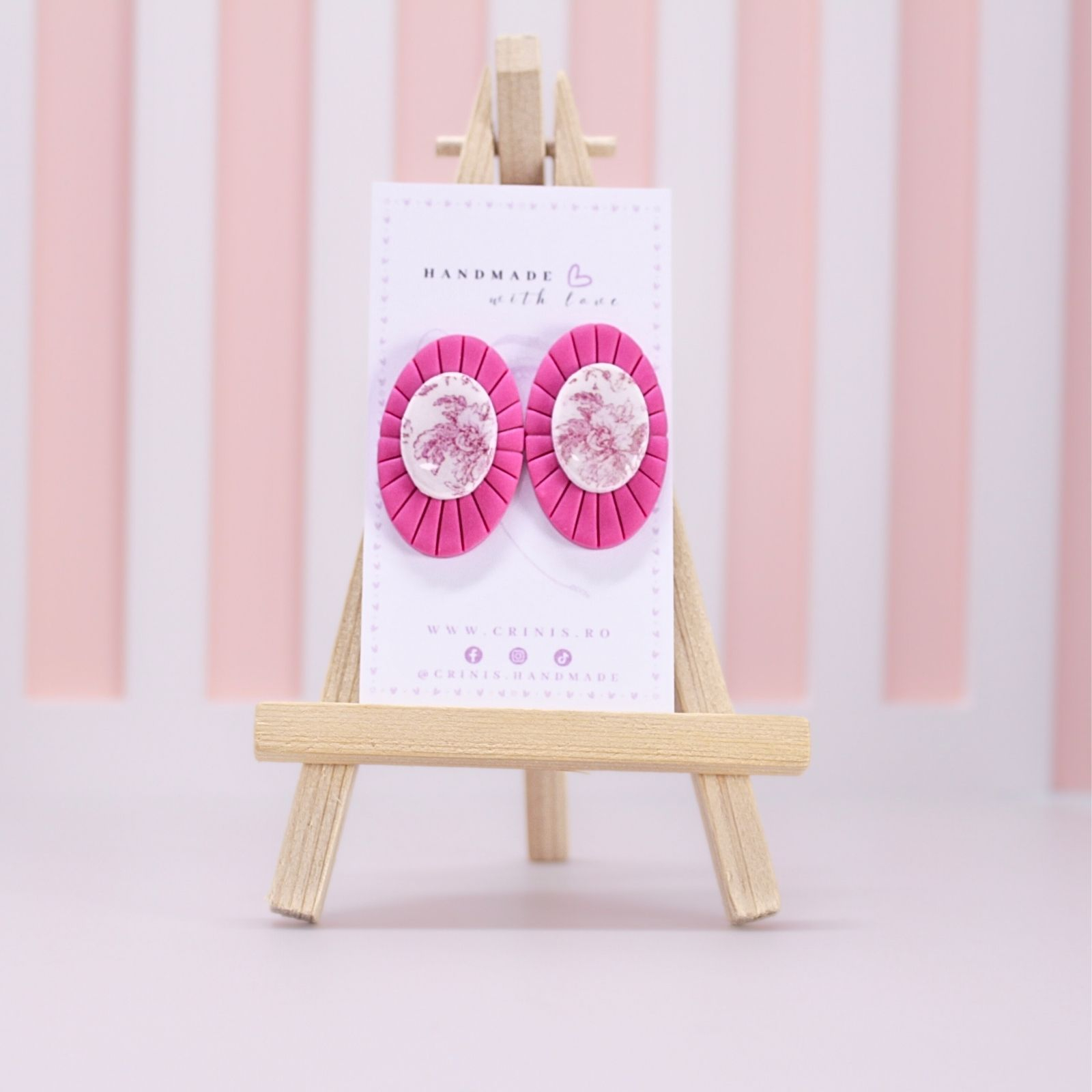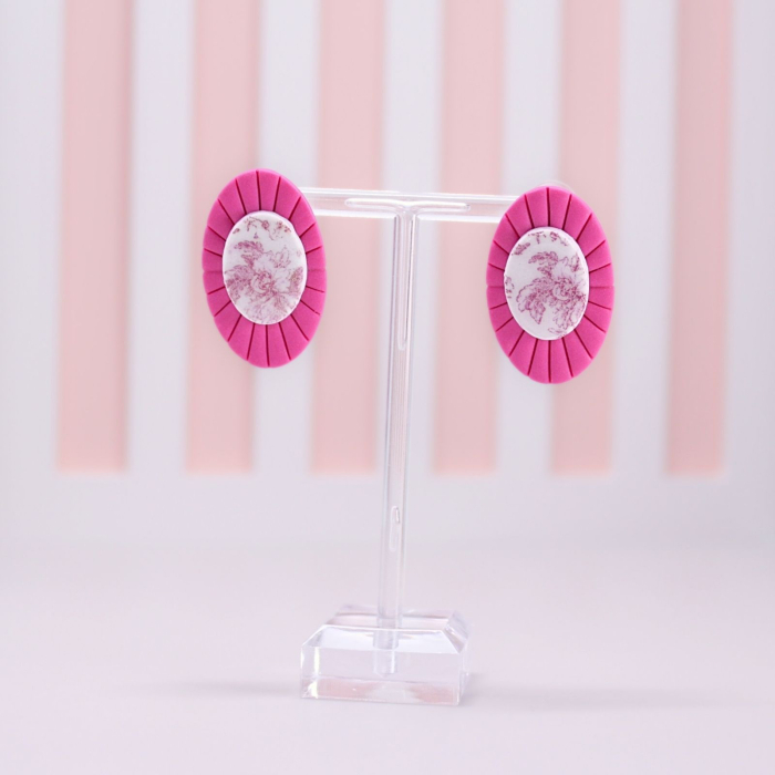 Cercei handmade din lut polimeric, cu tije din oțel inoxidabil, creați manual în micul nostru atelier, inspirați de frumusețea florilor, a naturii și de combinații delicate de culori, ce se îmbină într-un echilibru armonios.