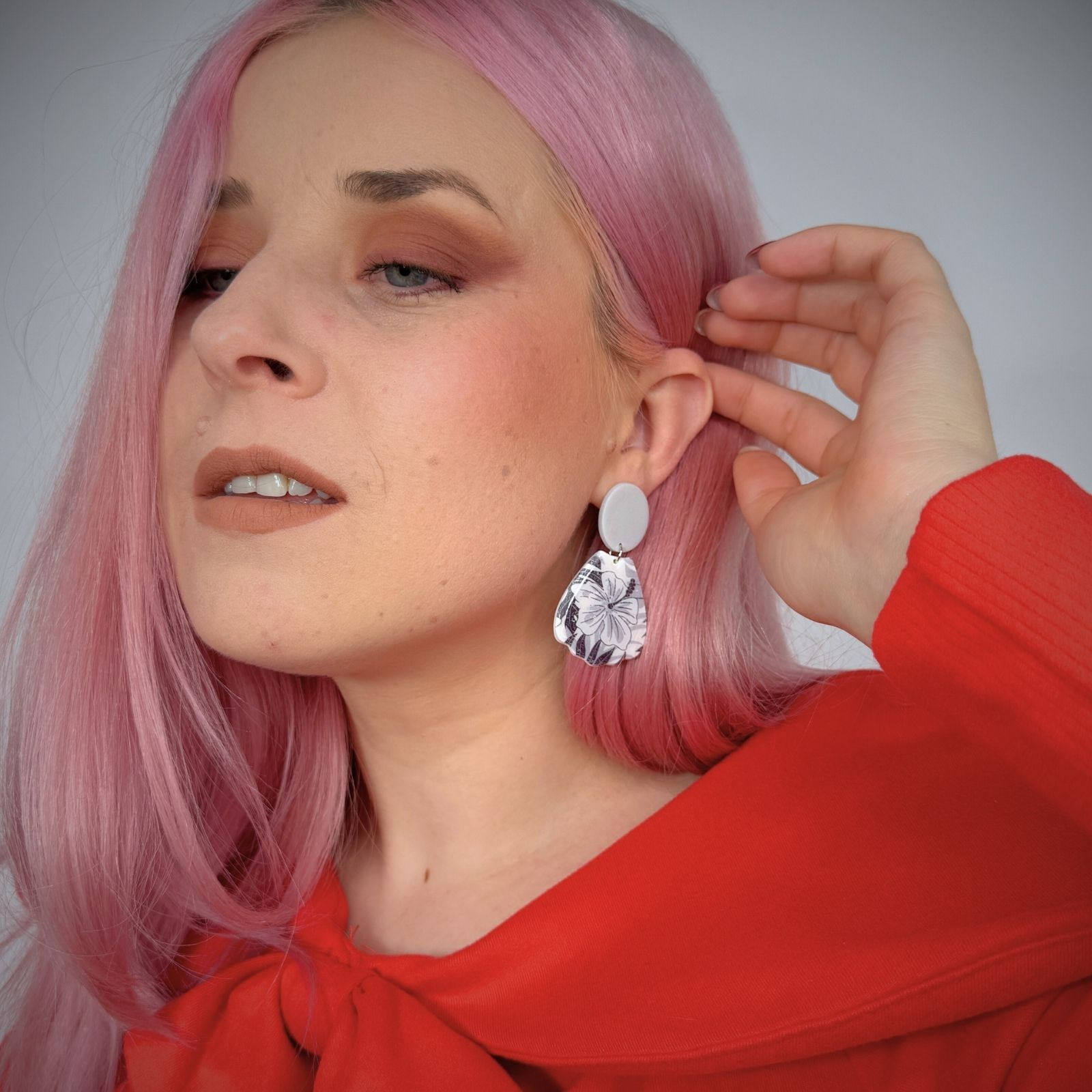 Cercei handmade din lut polimeric, cu tije din oțel inoxidabil, creați manual în micul nostru atelier, inspirați de frumusețea florilor, a naturii și de combinații delicate de culori, ce se îmbină într-un echilibru armonios.