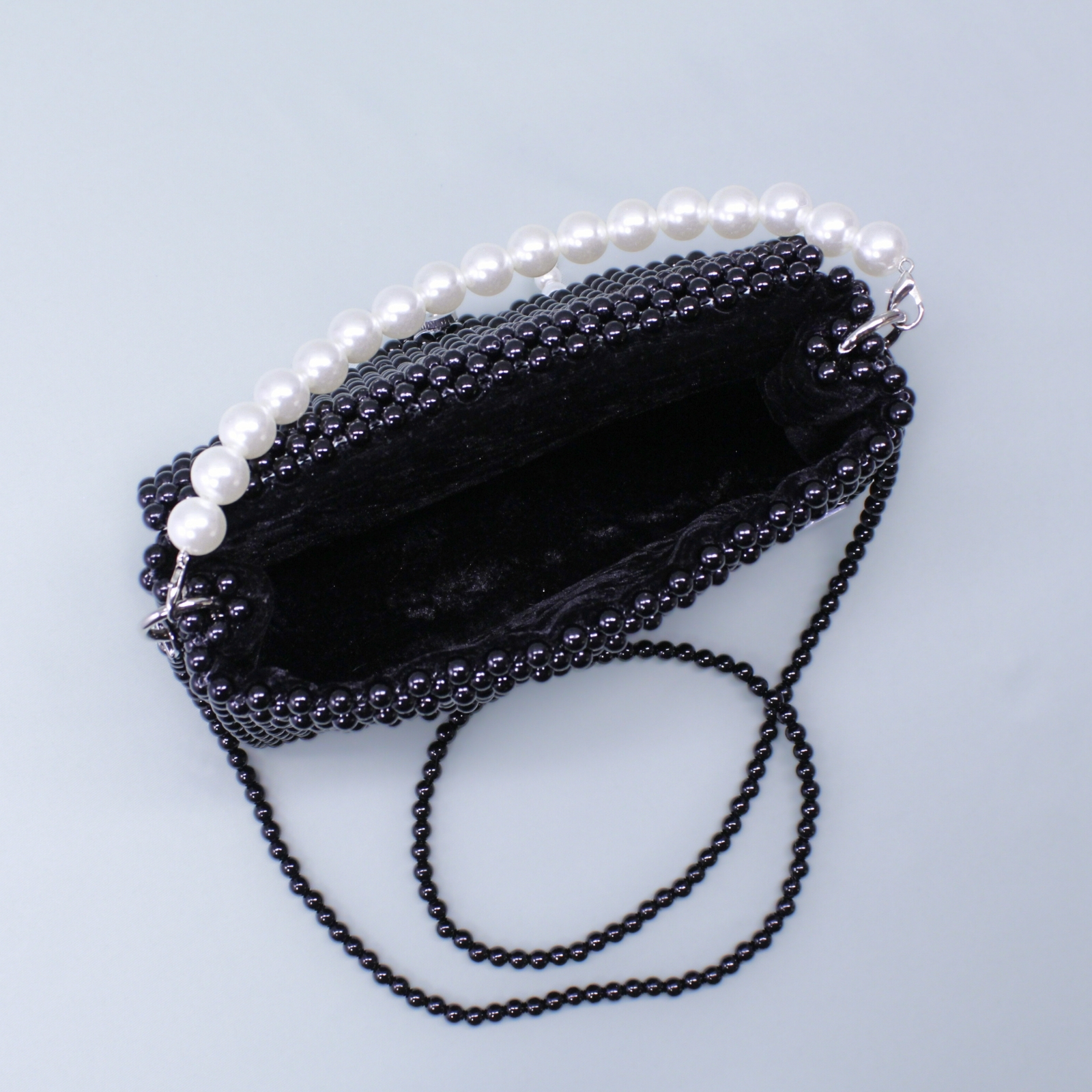 O geantă elegantă din mărgele acrilice, creată manual în micul nostru atelier, lucrată într-o combinație perfect echilibrată de două culori care amintesc de simbolul yin-yang. Contrastul lor delicat îi oferă un aer rafinat și modern, potrivit atât pentru ținute simple, cât și pentru cele sofisticate.