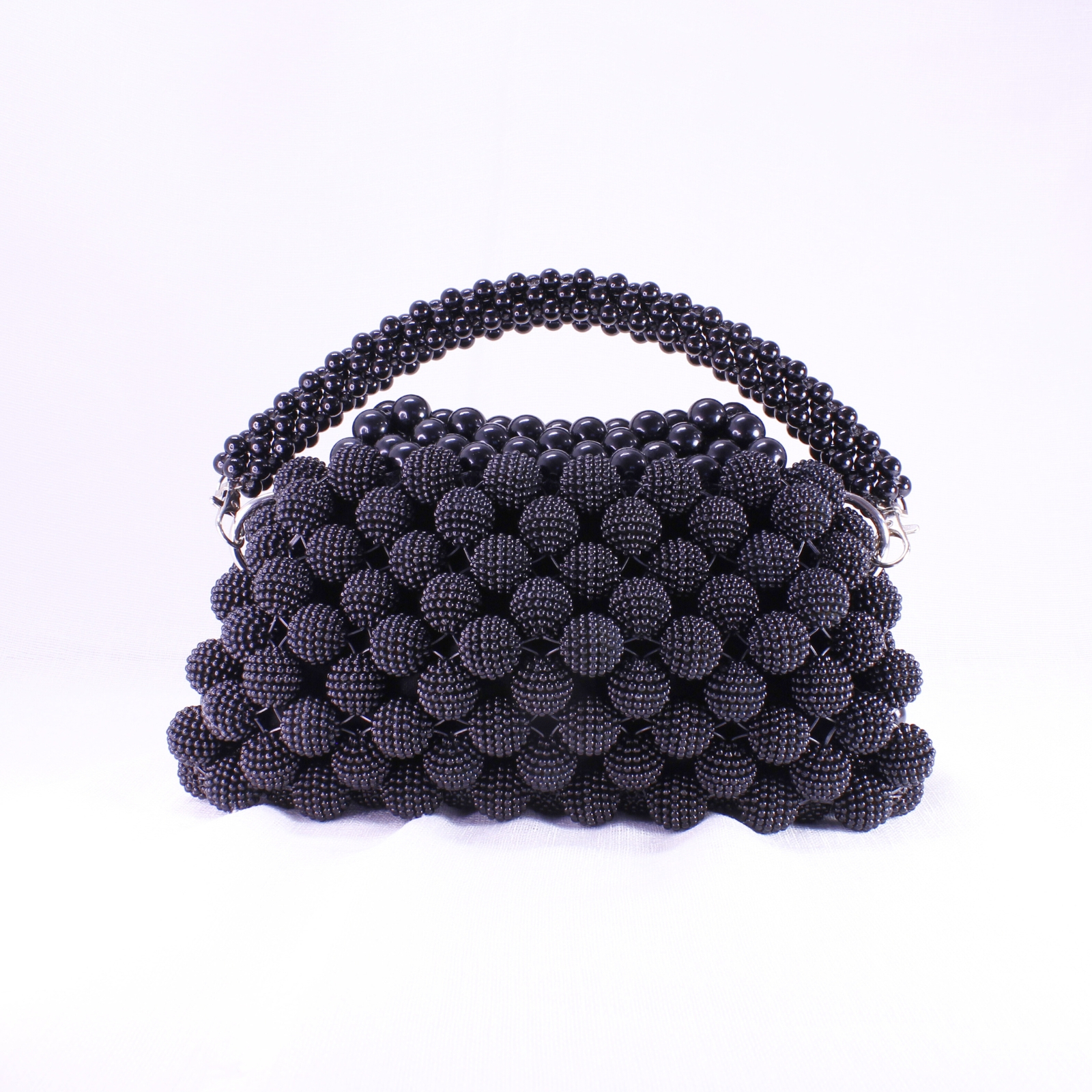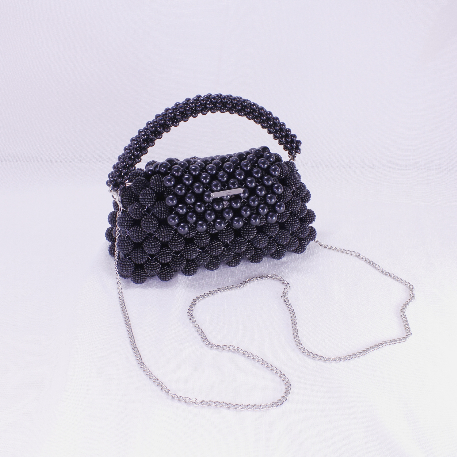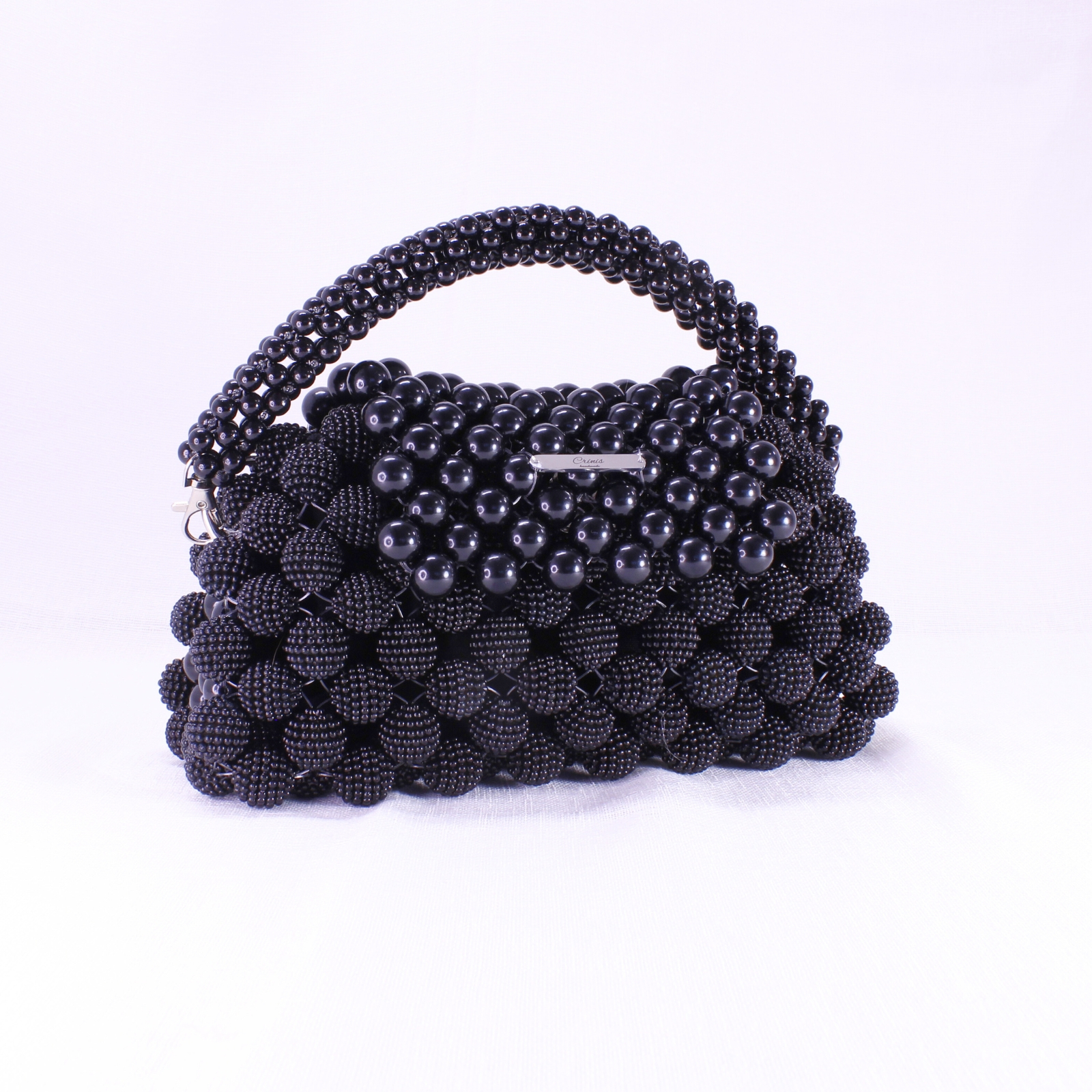 O piesă de efect, lucrată manual din mărgele negre cu finisaj lucios, ce impresionează prin eleganță și versatilitate.