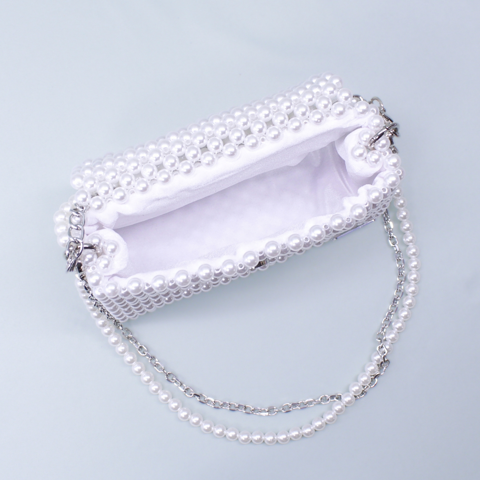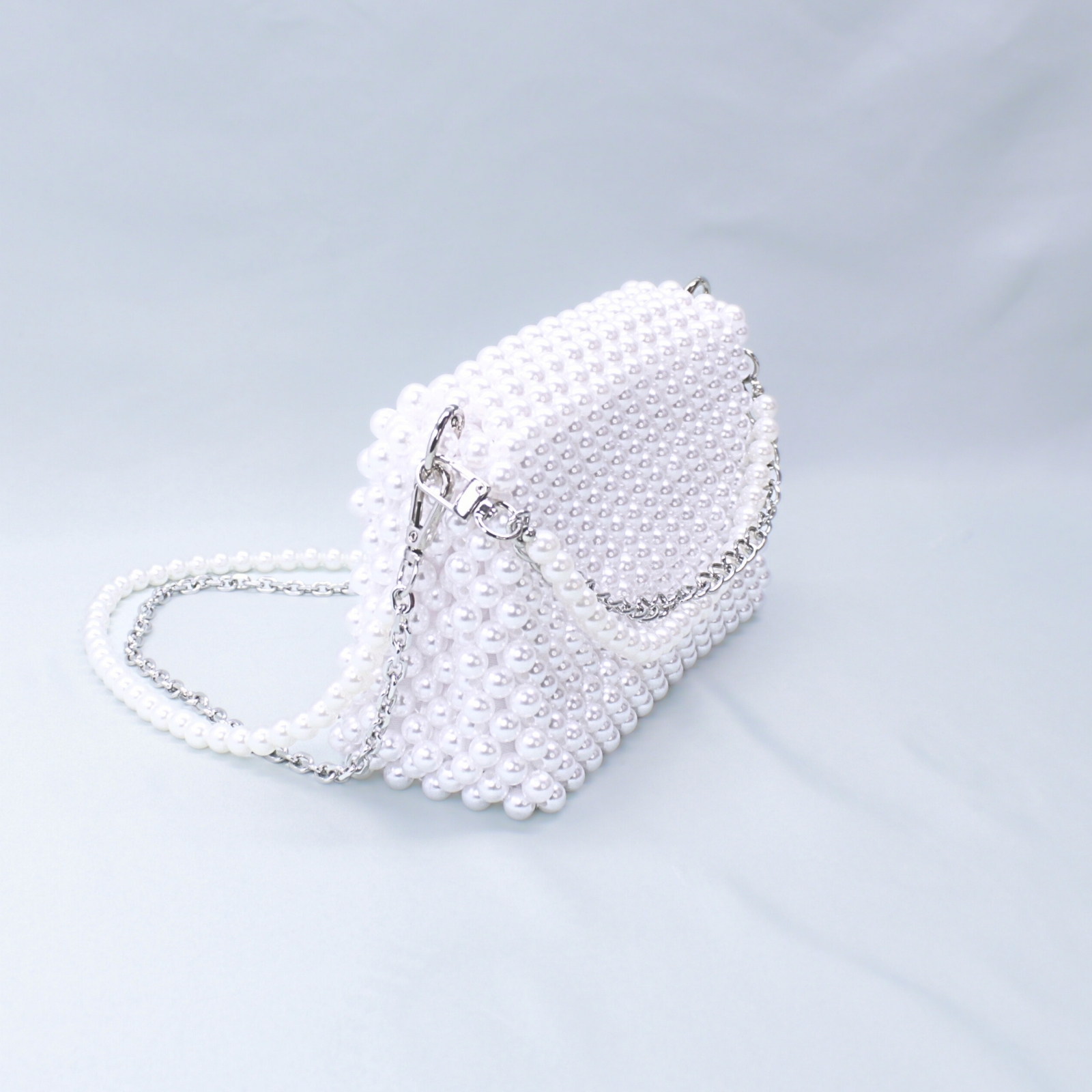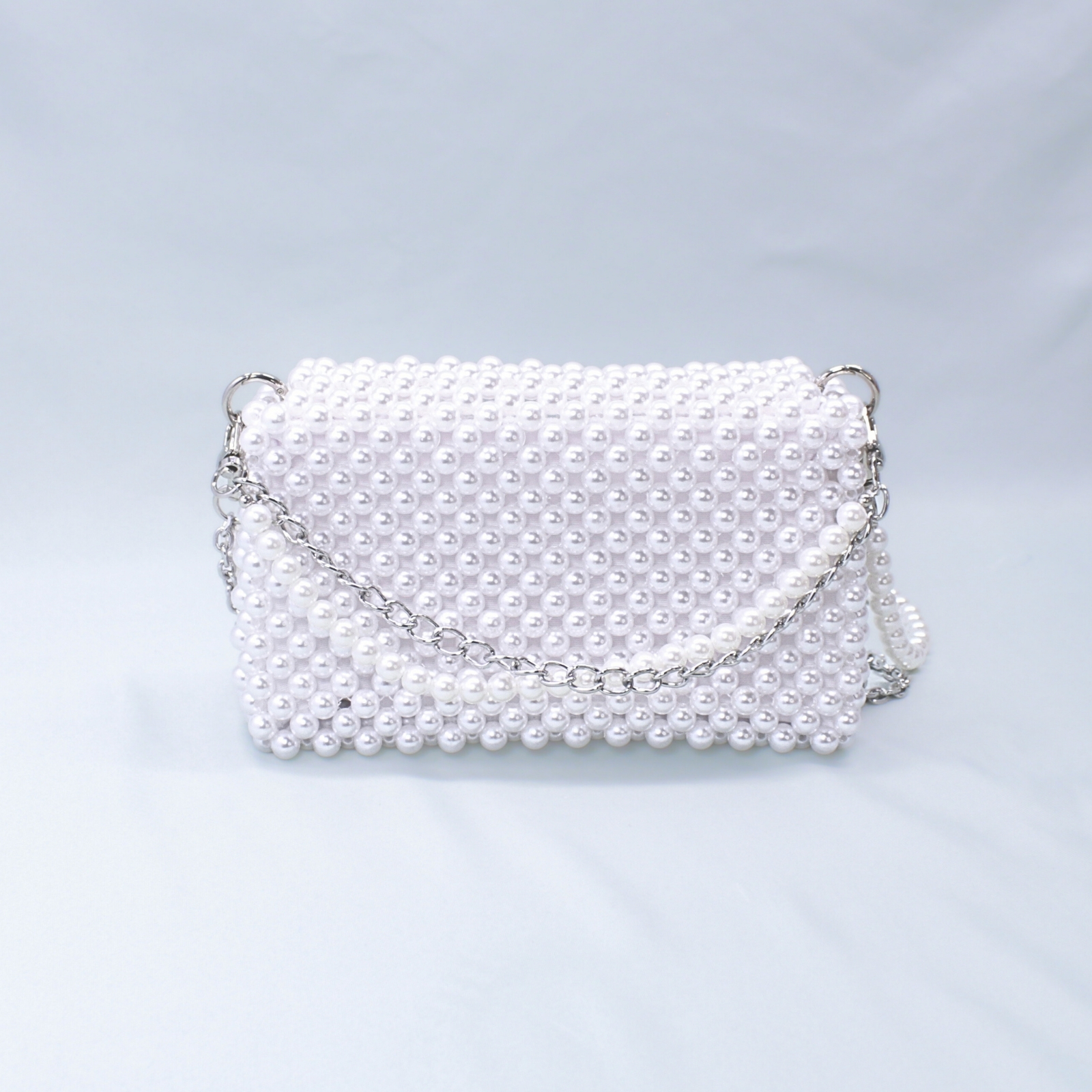 O geantă finuță și elegantă, lucrată manual în micul nostru atelier din mărgele acrilice albe, care combină frumusețea cu funcționalitatea.