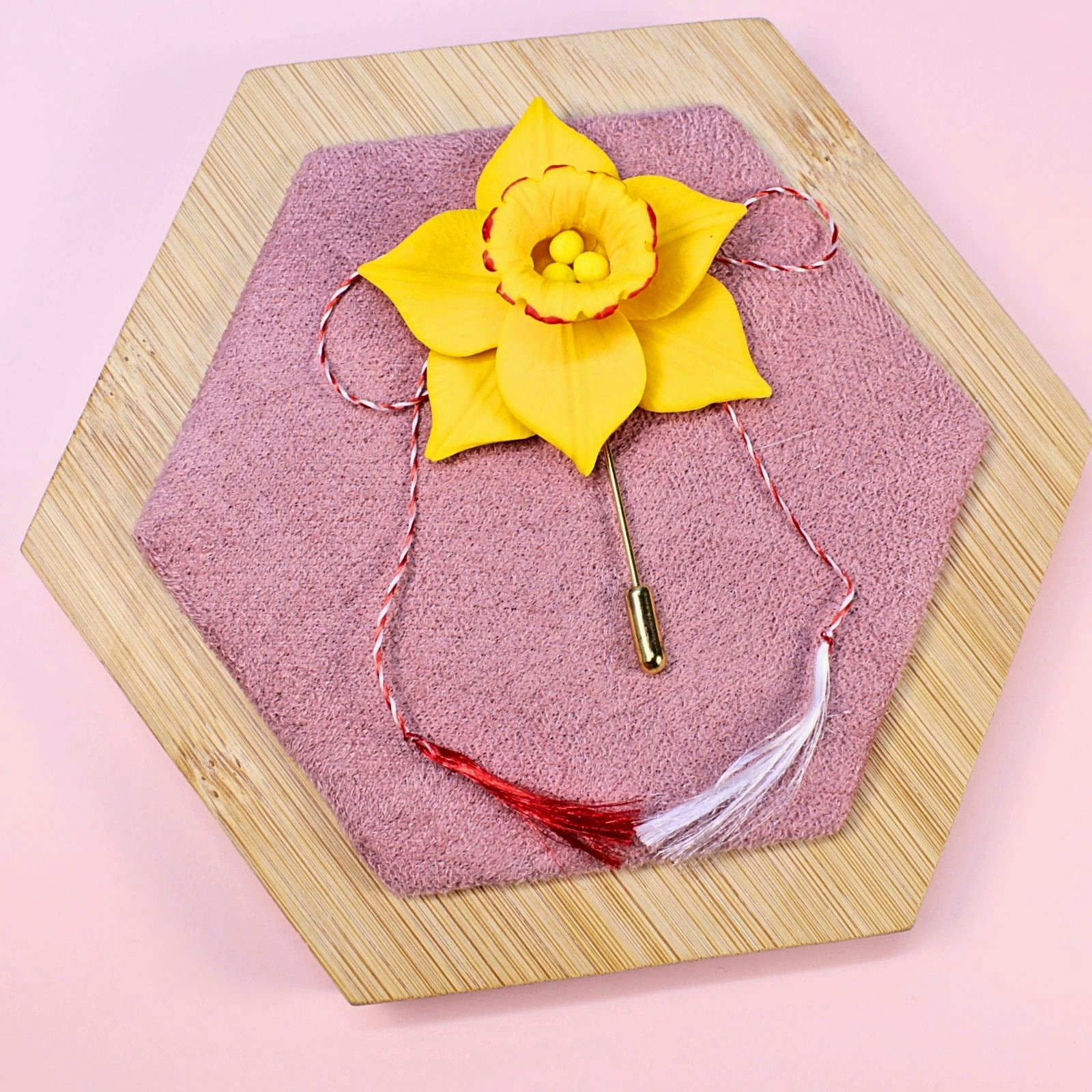 Inspirată de delicatețea și simbolistica narciselor, această broșă realizată manual din lut polimeric aduce un strop de soare și prospețime în orice ținută. Cu nuanțe vibrante de galben, este alegerea perfectă pentru iubitoarele de flori și accesorii deosebite.