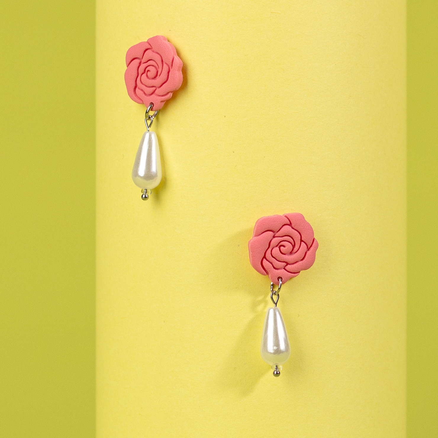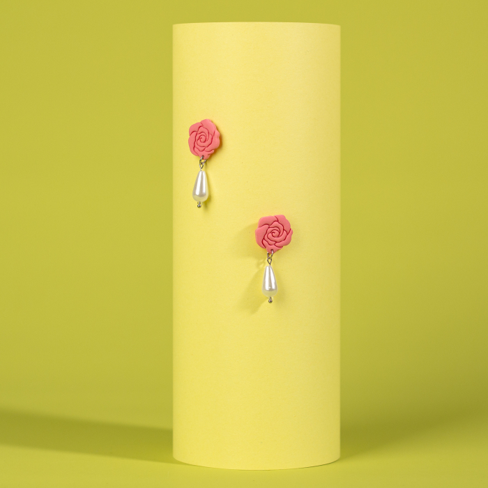 Îmbinând simplitatea cu eleganța, acești cercei handmade din lut polimeric în formă de trandafir cu o perlă reprezintă adorabila doză de rafinament.