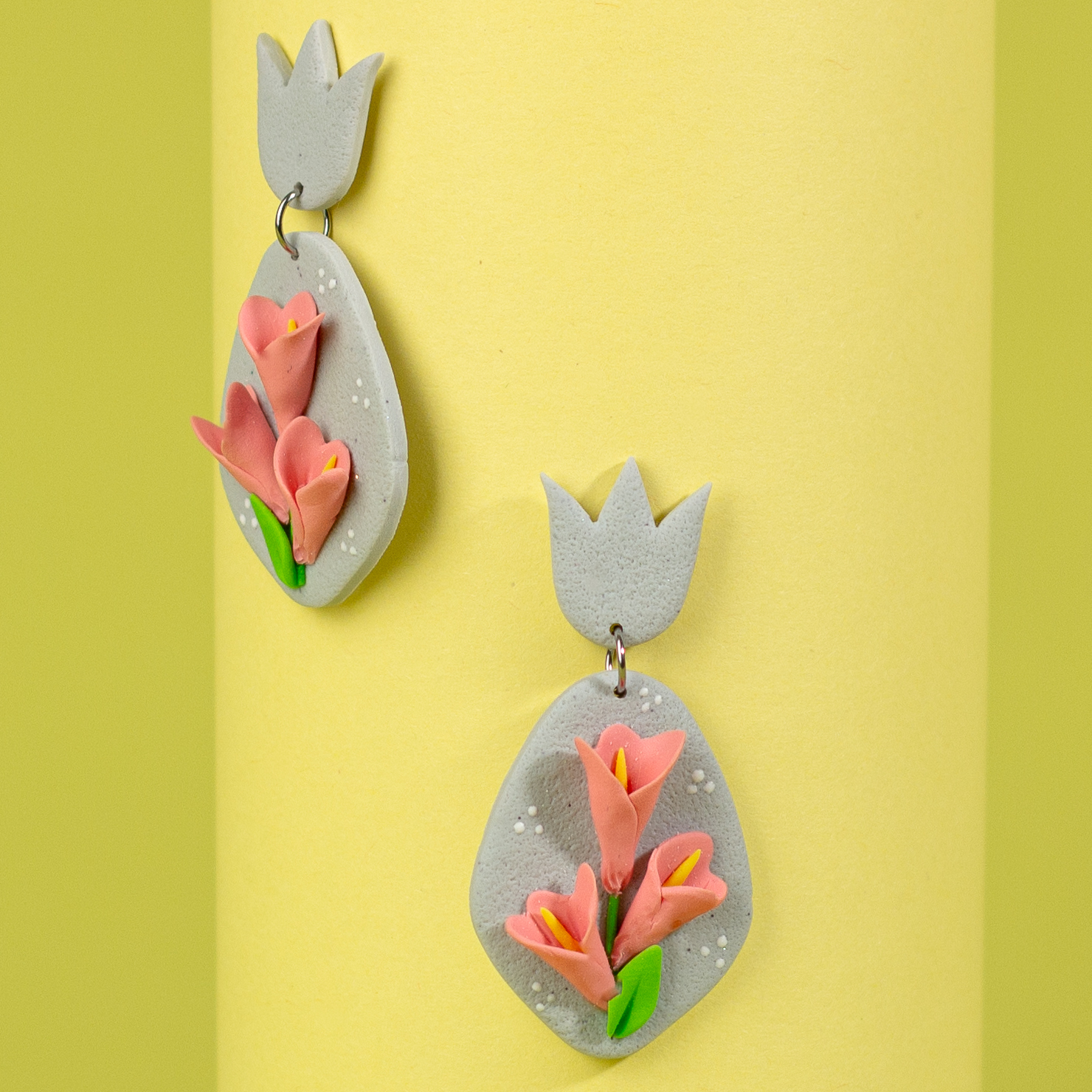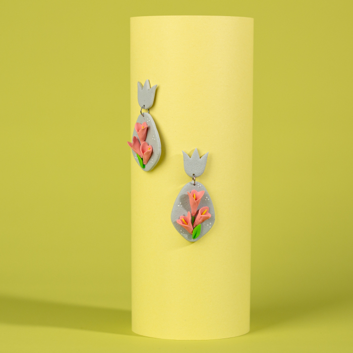 Îmbrățișează natura și eleganța cu această pereche de cercei din lut polimeric, ce încântă prin designul lor floral deosebit! Combinația de culori este una echilibrată și rafinată, îmbinând griul rece cu nuanțele calde de roz coral. Fiecare floare și frunză este modelată cu grijă și atenție la detalii, aducând un strop de prospețime și bucurie în fiecare purtare. Cu acești cercei, vei adăuga un plus de eleganță și rafinament oricărei ținute, fiind accesoriul perfect pentru a completa aspectul tău cu o notă subtilă de feminitate și stil. Bucură-te de frumusețea și originalitatea lor și lasă-i să-ți lumineze fiecare zi cu bucuria florilor și culorilor vii!