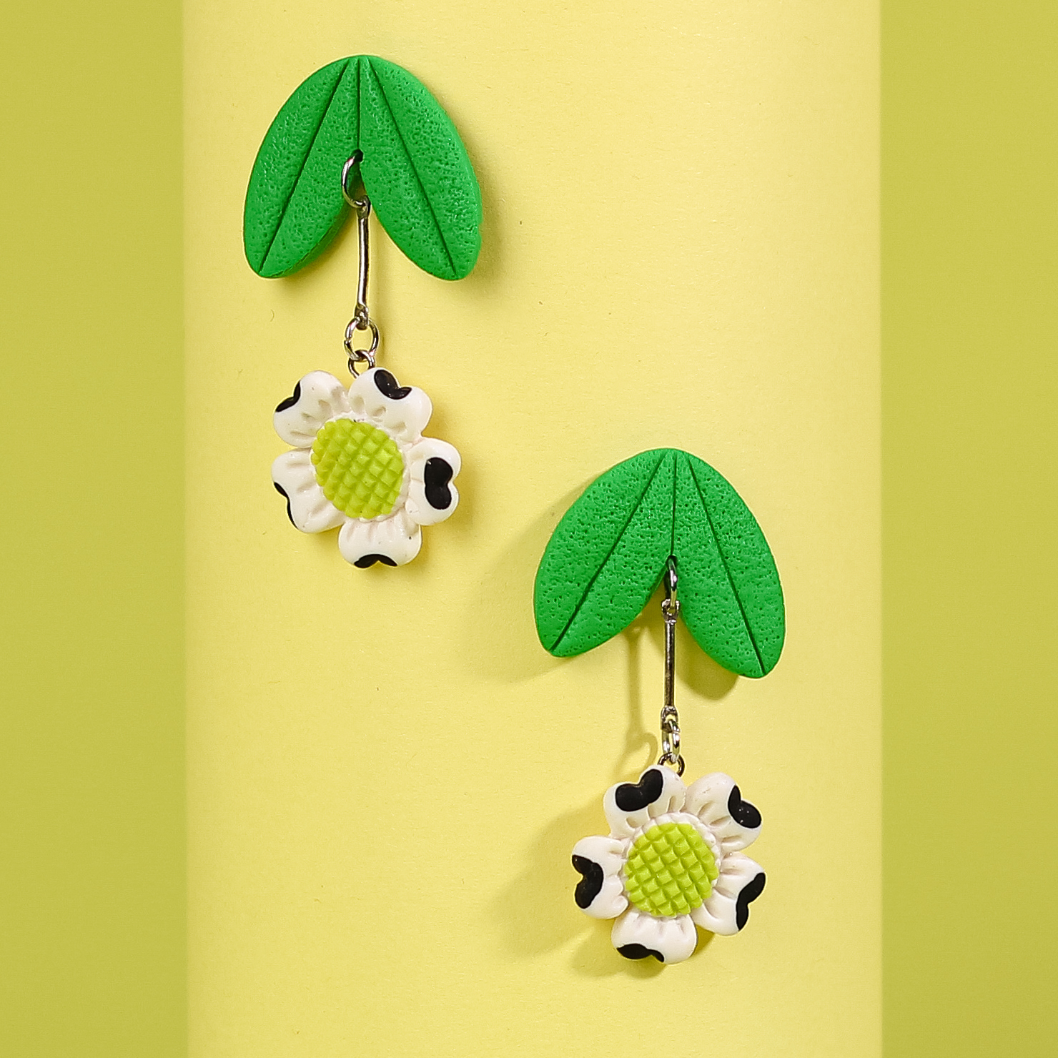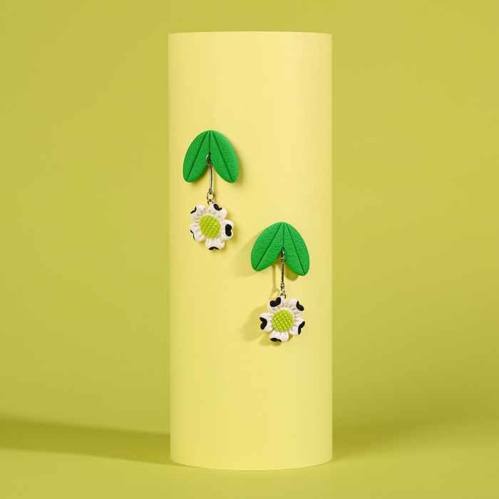 Îmbrățișați eleganța cu acești fermecători cercei din lut polimeric, având florile alb-negru "Mini-Moo"! Fiecare pereche este o combinație îndrăzneață de rafinament și originalitate, aducând un strop de stil și personalitate fiecărei purtătoare. Perfecti pentru a completa orice ținută cu o notă de distincție și farmec