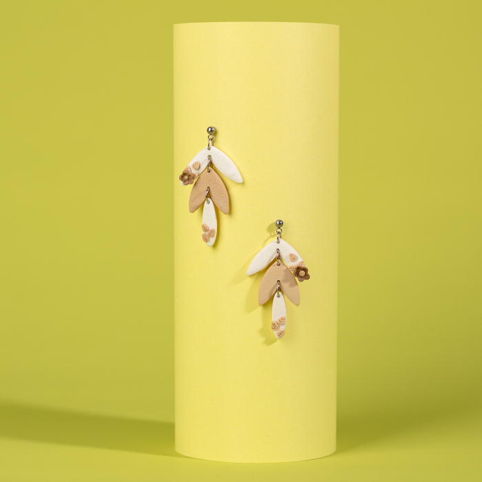 Textura ușoară și flexibilă a lutului polimeric asigură confortul în purtare, în timp ce culorile vibrante și formele originale transformă această pereche de cercei într-un statement al individualității tale. Fie că alegi să îi asortezi cu o ținută casual sau să îi integrezi într-un look mai sofisticat, acești cercei sunt garanția unei apariții memorabile.
