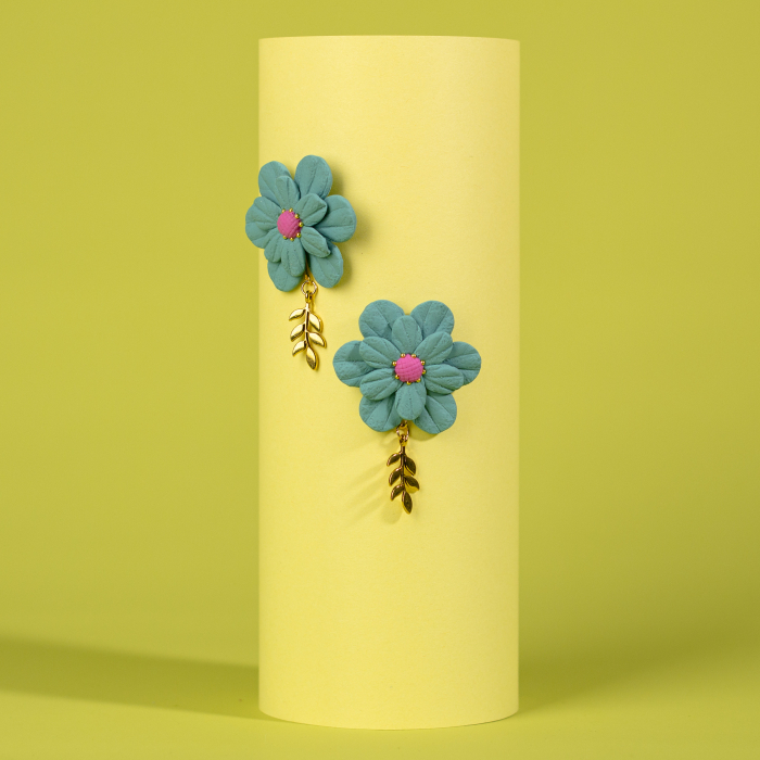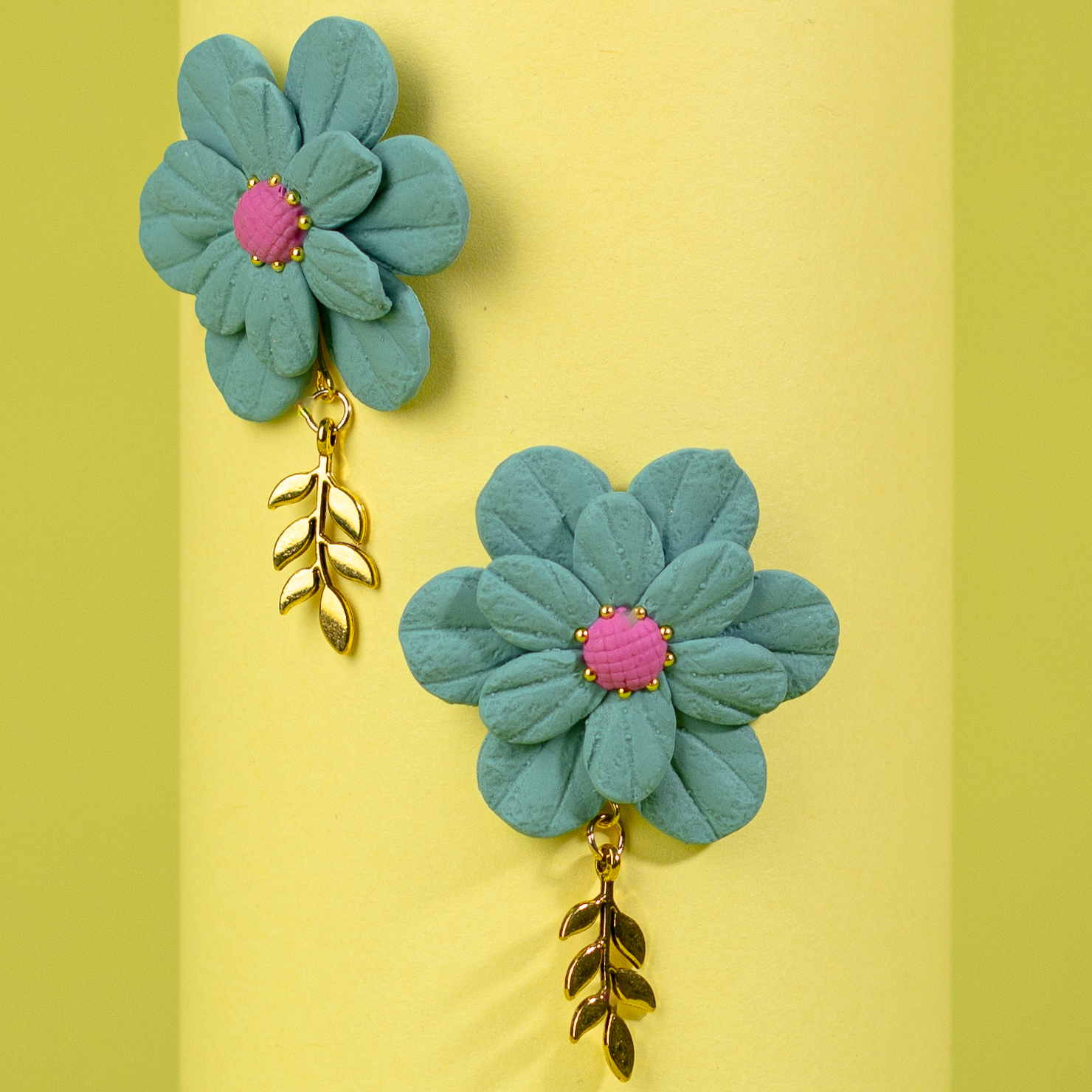 Parte din colecția Spring, cerceii Zinnia Glow aduc un omagiu frumuseții florale printr-un design sofisticat și vibrant. Forma lor delicată de floare, într-o nuanță divină de verde-albăstrui, este completată de o frunză aurită, adăugând un echilibru perfect între prospețime și eleganță.