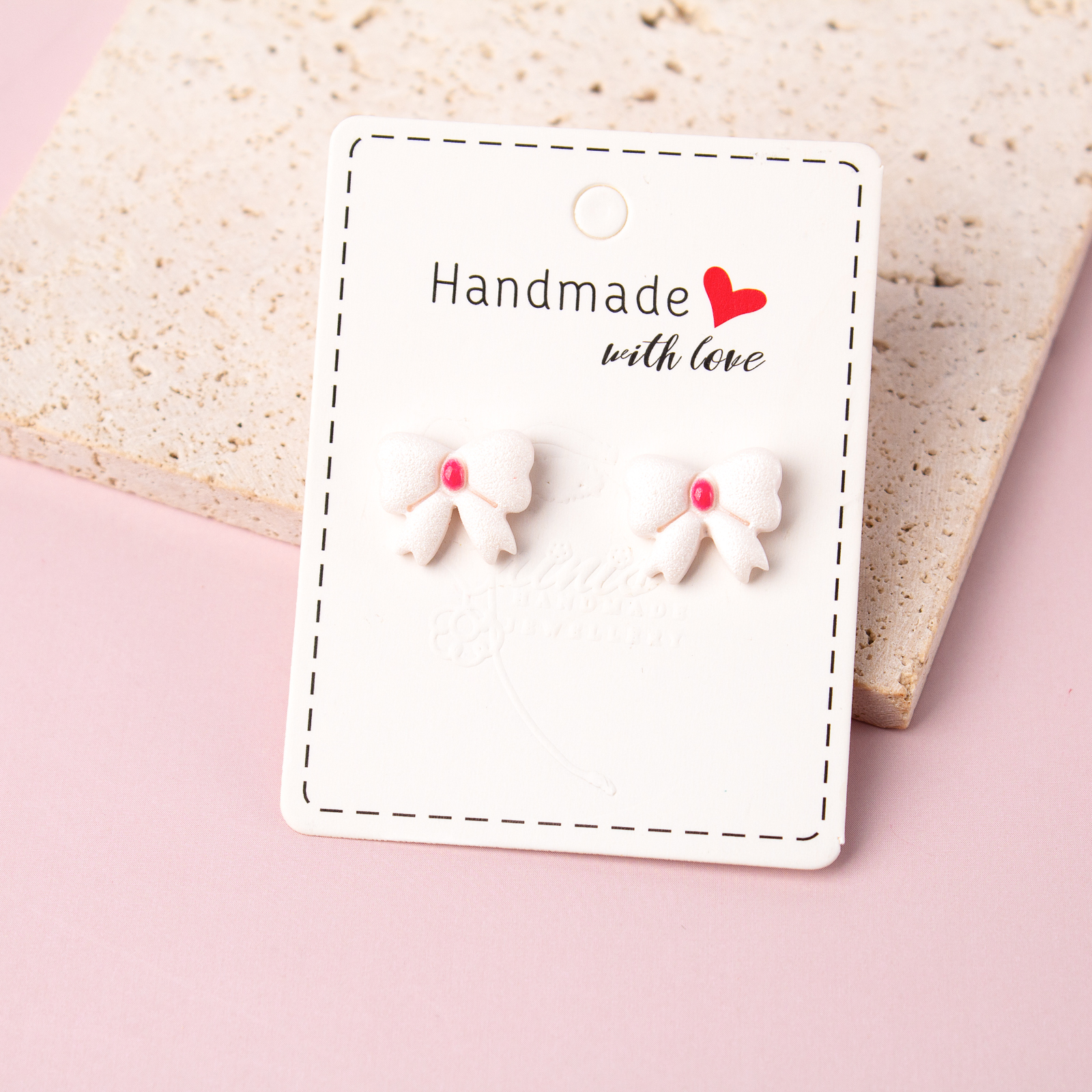 Îmbrăcați-vă într-o dulce eleganță cu acești adorabili cercei în formă de fundiță din lut polimeric! Fiecare pereche emană un farmec jucăuș și feminin, aducând un strop de veselie și rafinament în fiecare purtare. Perfecti pentru a adăuga o notă de stil și gingășie oricărei ținute!