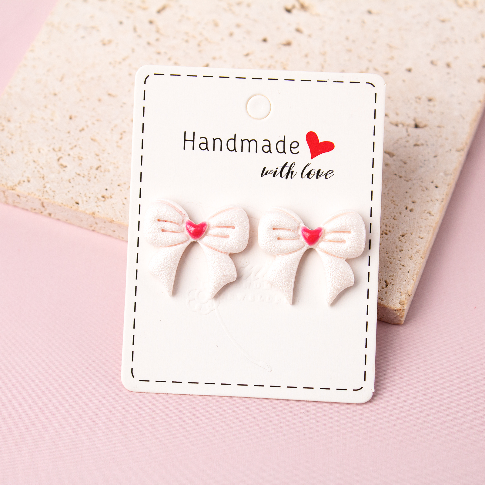Îmbrăcați-vă într-o dulce eleganță cu acești adorabili cercei în formă de fundiță din lut polimeric! Fiecare pereche emană un farmec jucăuș și feminin, aducând un strop de veselie și rafinament în fiecare purtare. Perfecti pentru a adăuga o notă de stil și gingășie oricărei ținute!
